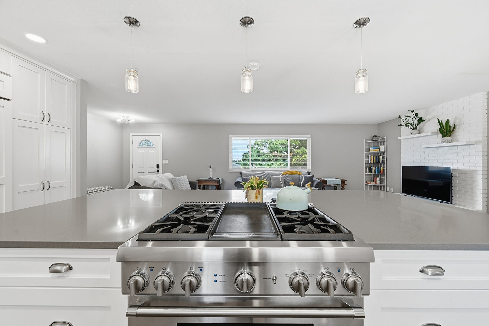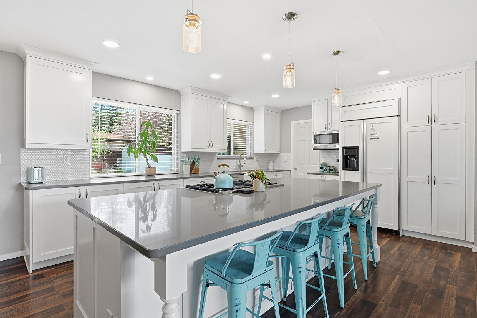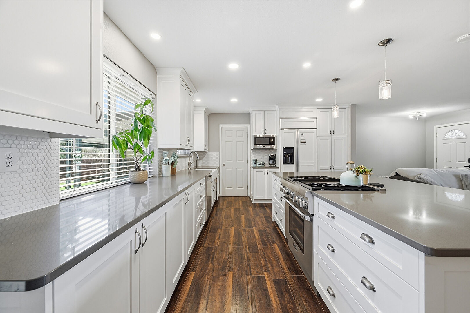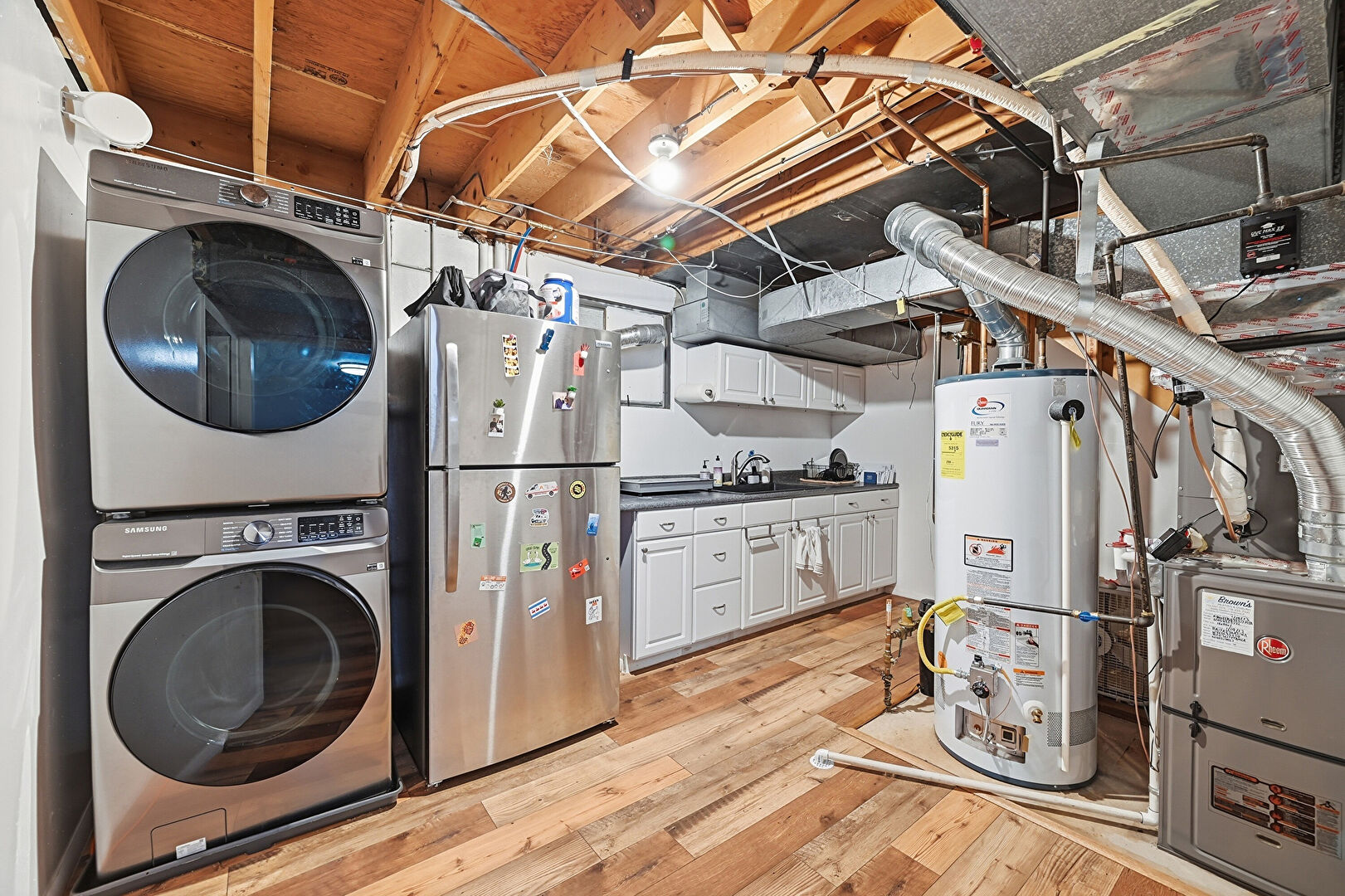 Baseboards Wall, Crown Molding Cabinets, Drywall, Fireplace, Furnace, Kitchen Bar, Kitchen Island, L Shaped Kitchen, Laundry, Natural Light, Opens To Living Area, Pendant Lighting, Recessed Lighting, Shaker Cabinets, Stone Countertops, Water Heater, Wood Finish Floor, Basement, Kitchen Island, Natural Light, Pendant Lighting, Recessed Lighting