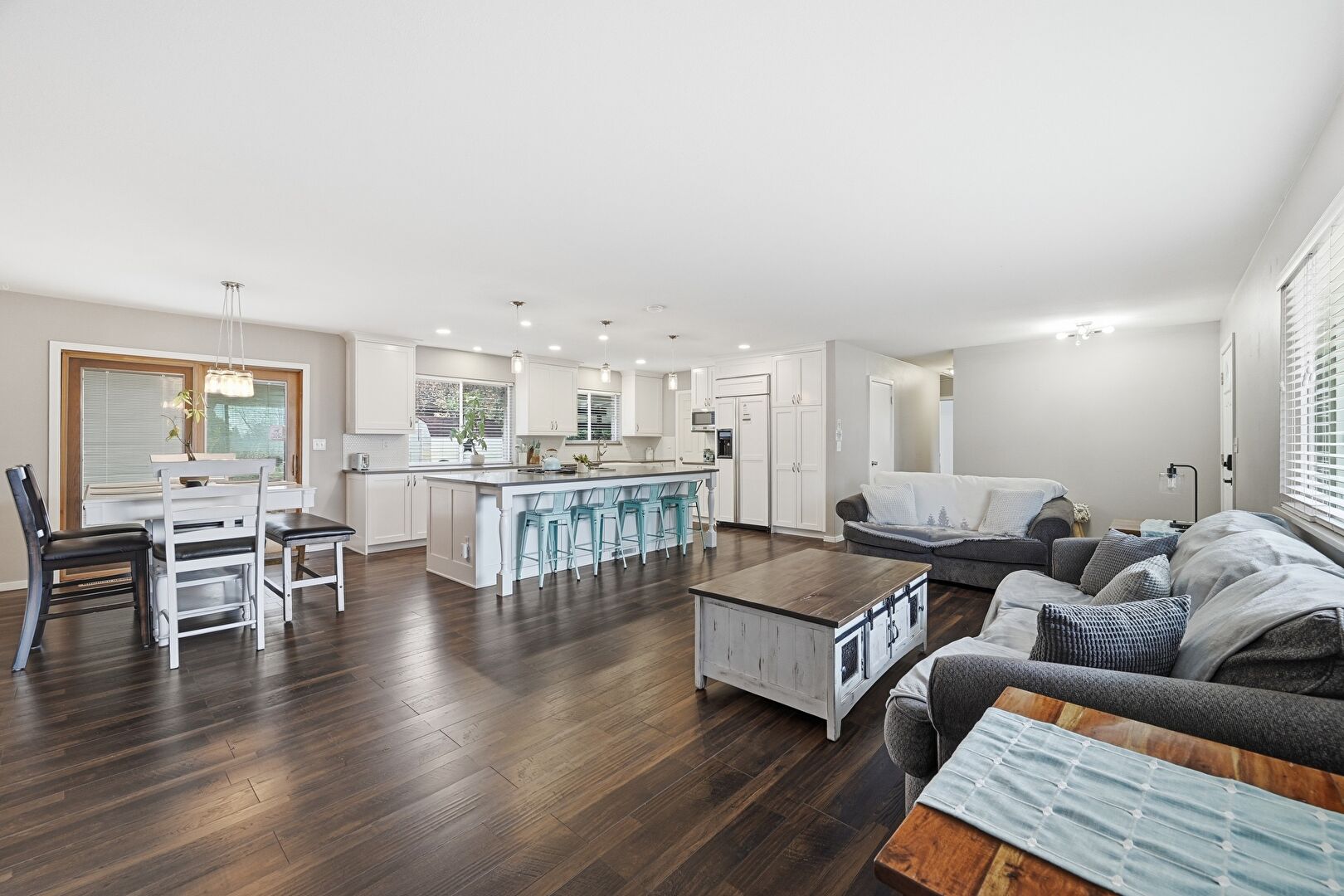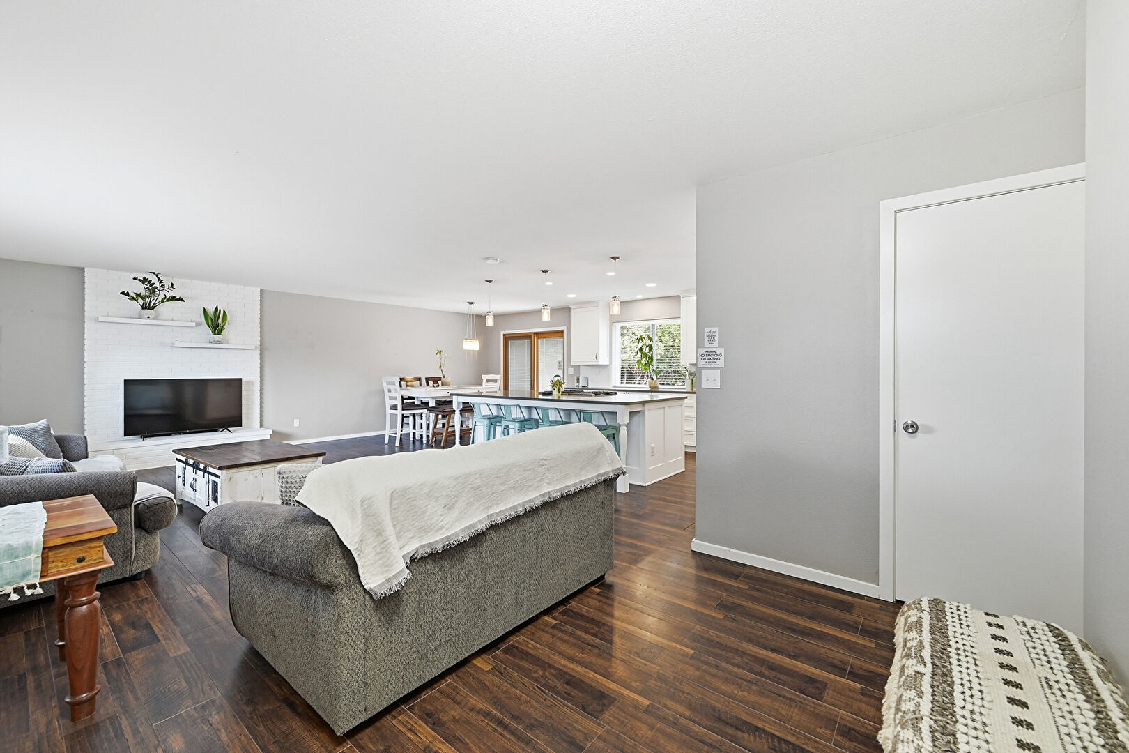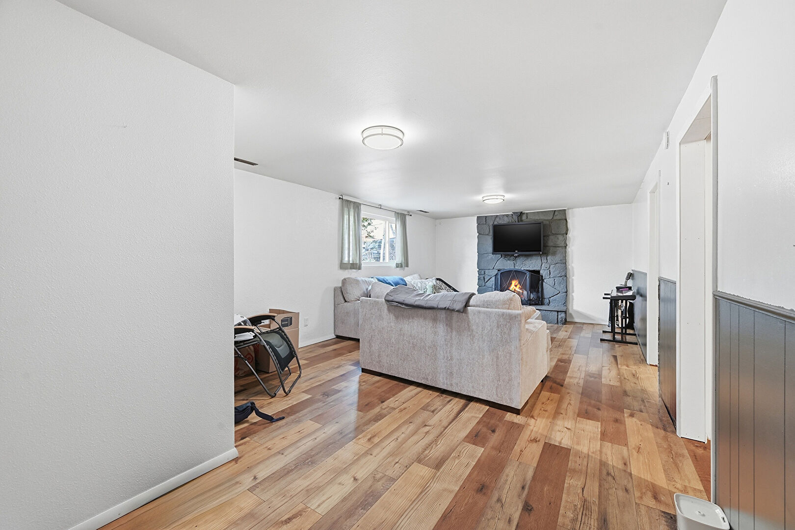 Baseboards Wall, Basement, Drywall, Fireplace, L Shaped Kitchen, Natural Light, Notable Chandelier, Recessed Lighting, Vent, Wood Finish Floor, Drywall, Natural Light, Wood Finish Floor