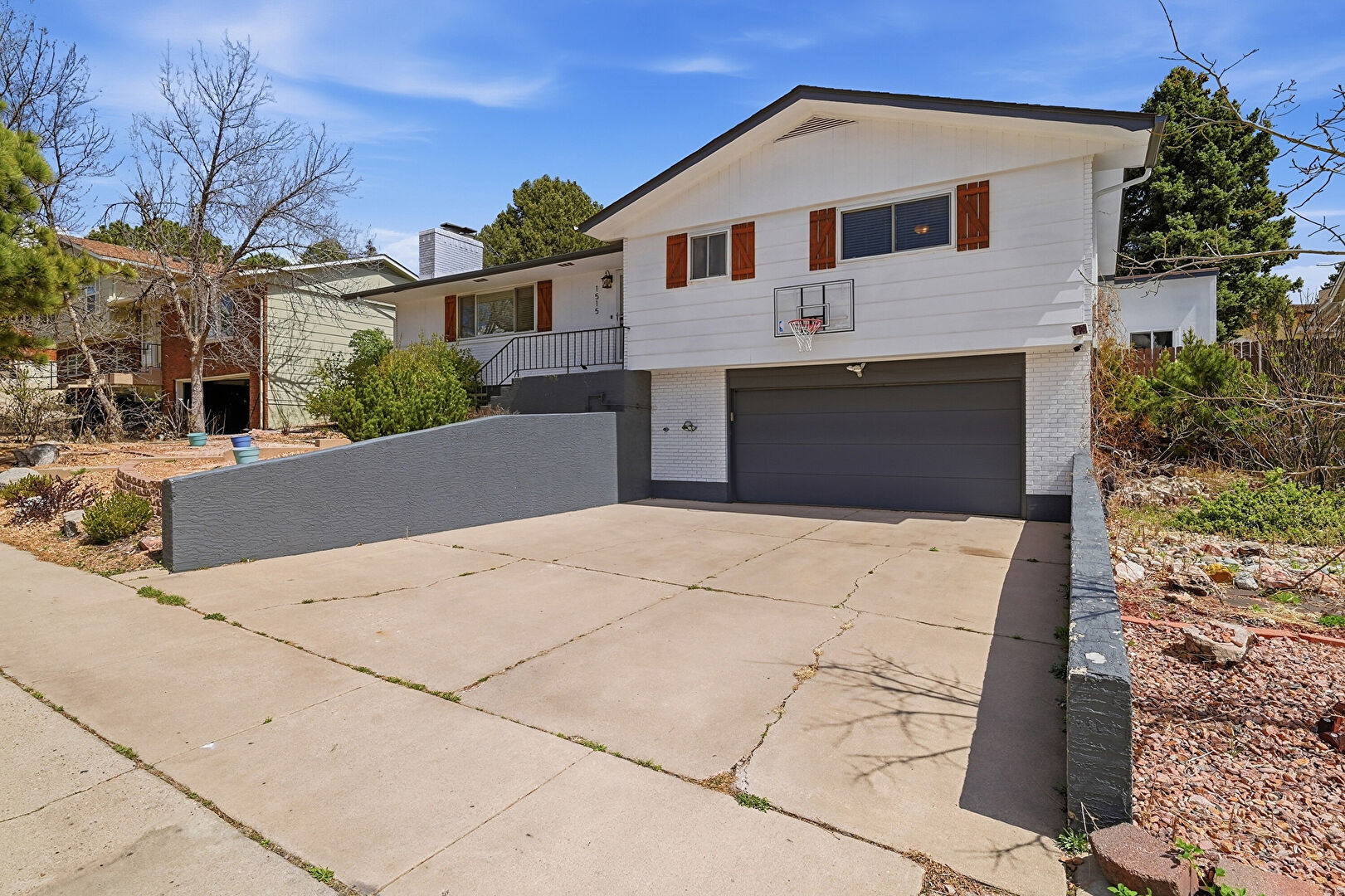 Basement Garage, Built In Garage, Chimney, Downspout, Driveway, Gutters, Horizontal Siding, Mountain View, Porch, Residential View, Shingle Roof, Stairs, Built In Garage, Downspout, Mountain View, Residential View