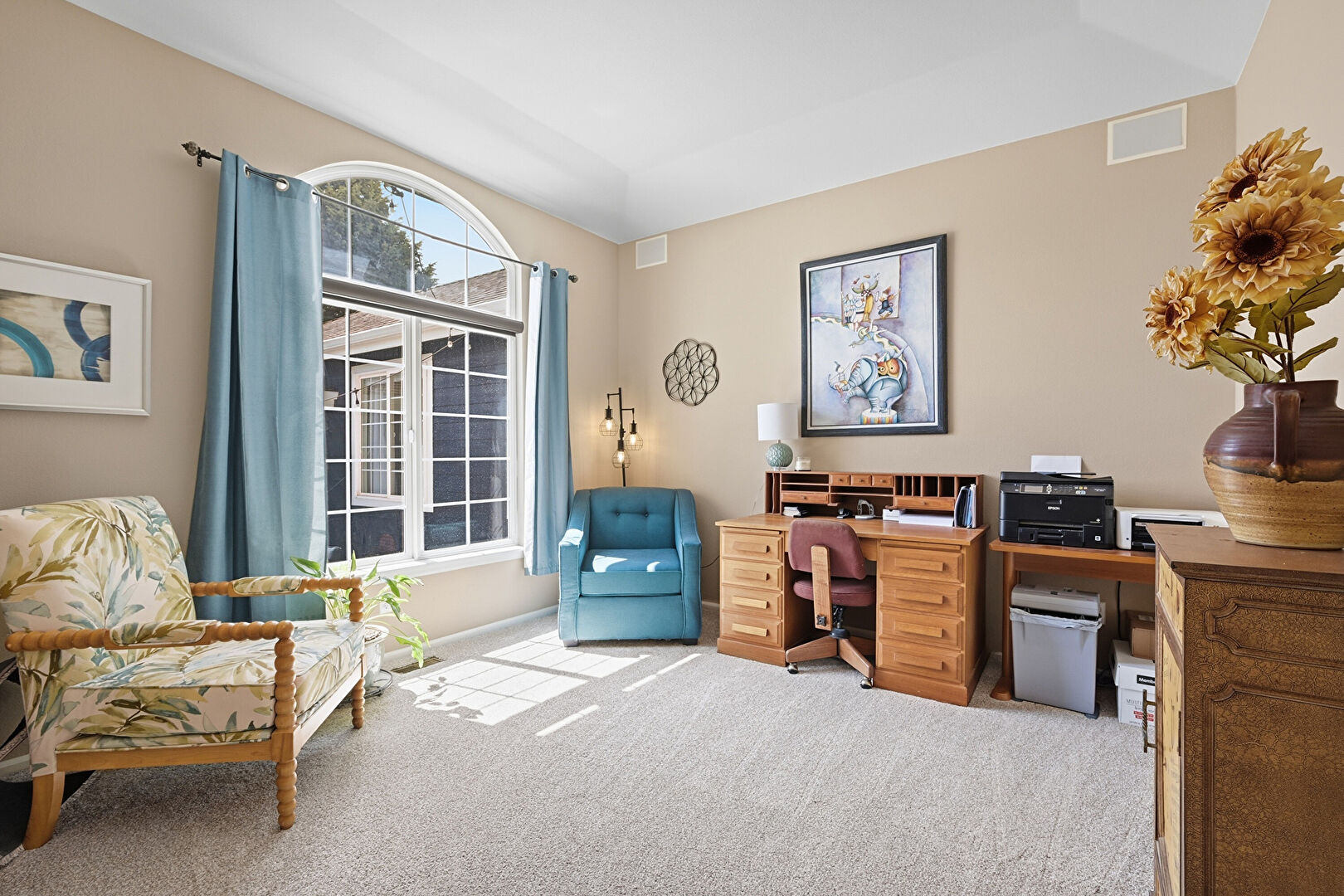 Baseboards Wall, Carpet, Drywall, Natural Light, Office Area, Vent, Carpet, Smoke Carbon Monoxide Detector