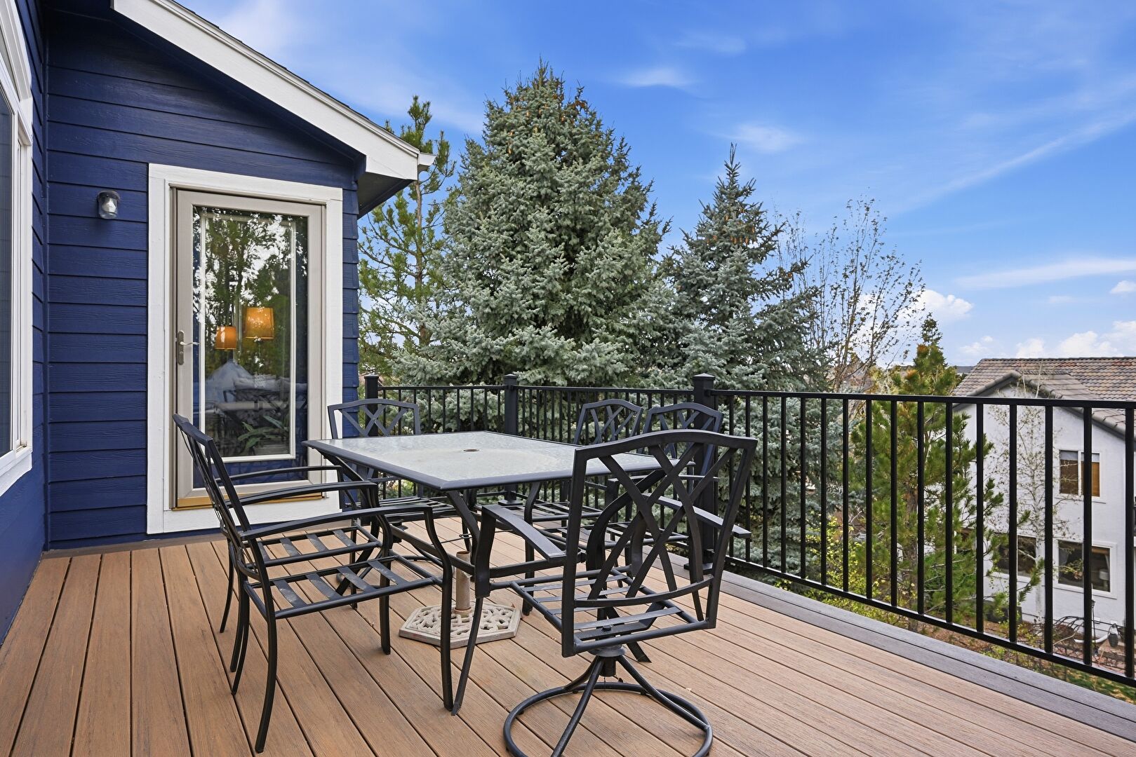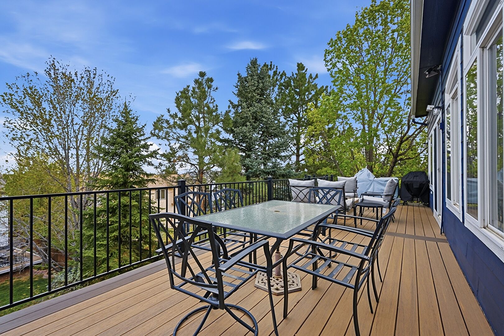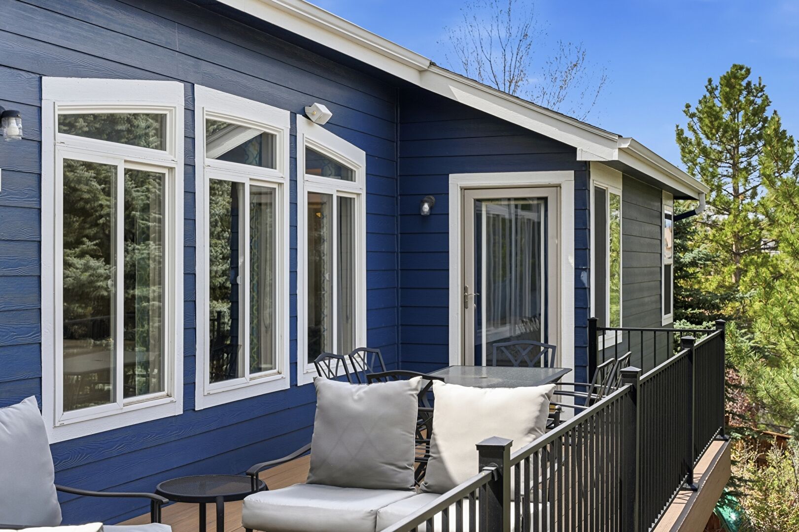 Balcony, Downspout, Gutters, Horizontal Siding, Outdoor Dining Area