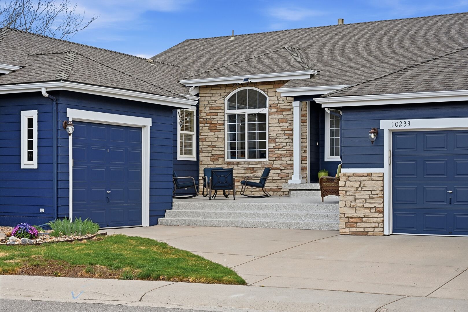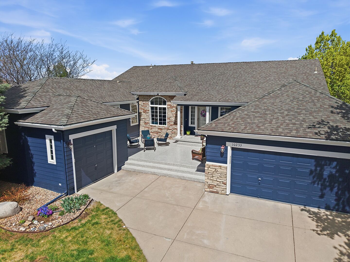 Downspout, Driveway, Gutters, Horizontal Siding, Shingle Roof, Stone Siding, Stoop, Driveway, Horizontal Siding, Shingle Roof