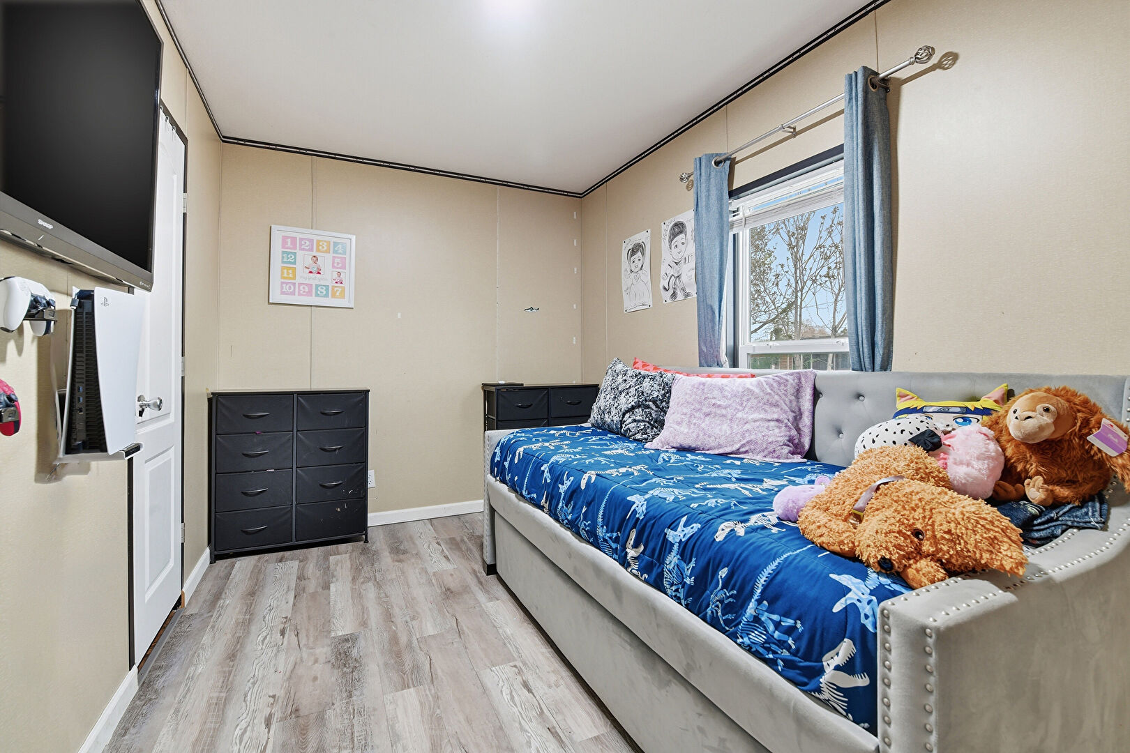 Drywall, Natural Light, Wood Finish Floor, Baseboards Wall