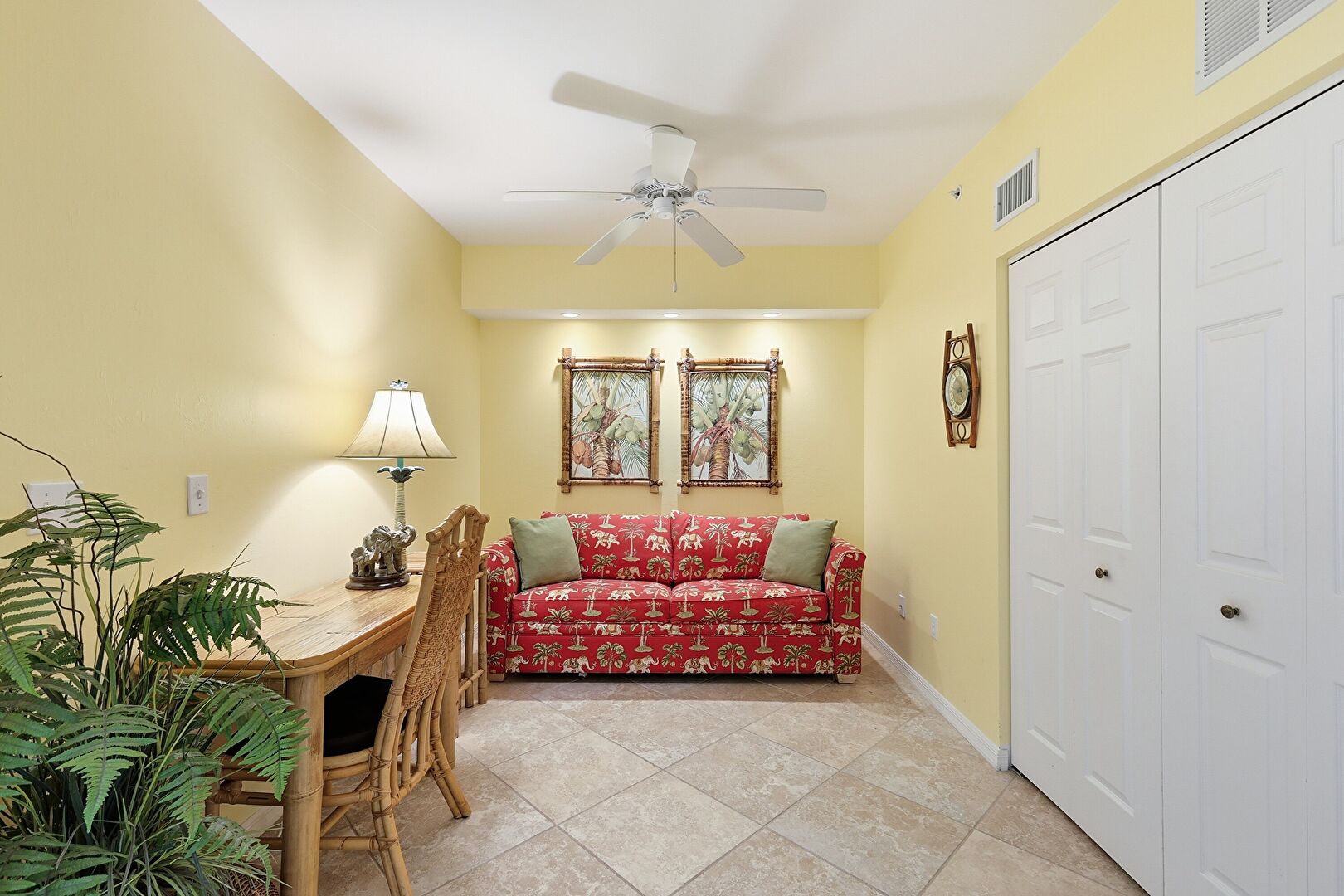 Ceiling Fan, Drywall, Smoke Carbon Monoxide Detector, Tile Floor, Vent, Baseboards Wall