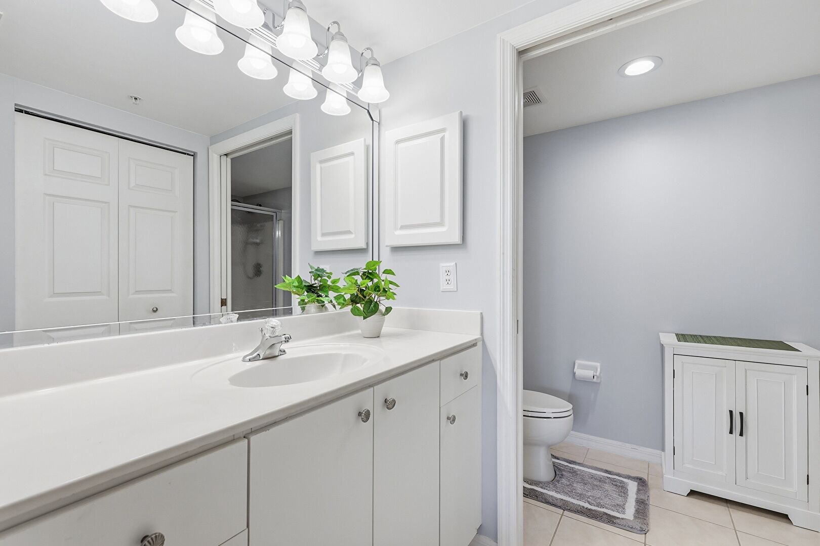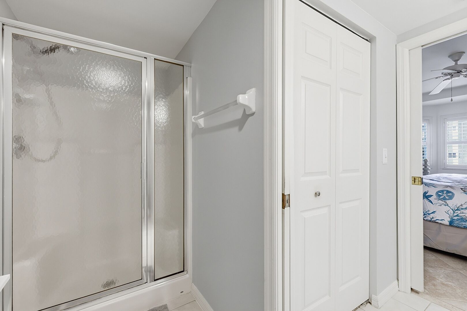Baseboards Wall, Ceiling Fan, Closet, Drywall, Ensuite Bathroom, Full Bathroom, Recessed Lighting, Tile Floor, Vanity, Vent, Natural Light, Tile Floor, Vanity