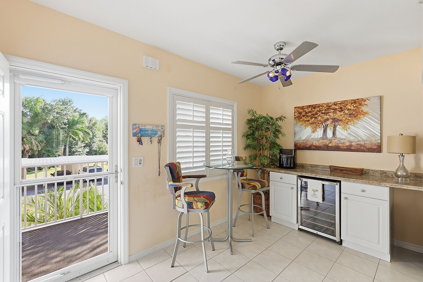 Baseboards Wall, Ceiling Fan, Drywall, Natural Light, Raised Cabinets, Stone Countertops, Wine Cooler, Tile Floor