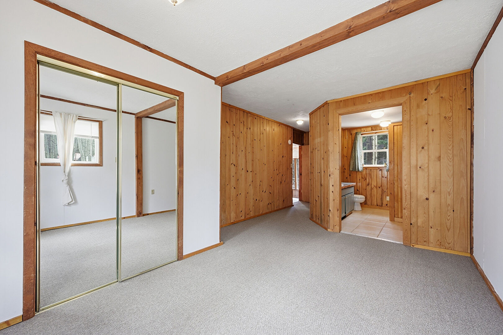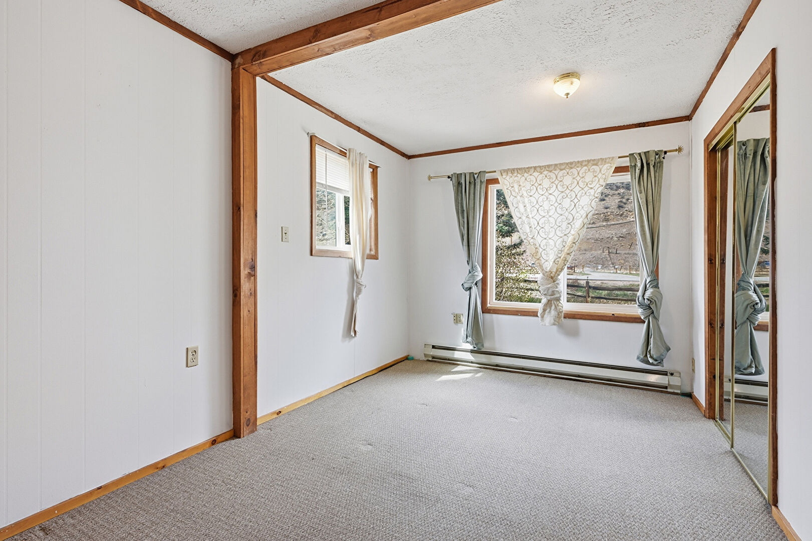 Baseboard Radiator, Baseboards Wall, Carpet, Crown Molding, Drywall, Ensuite Bathroom, Natural Light, Wood Wall, Closet, Textured Ceiling