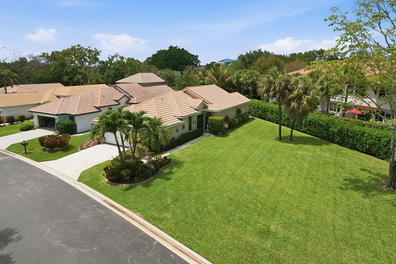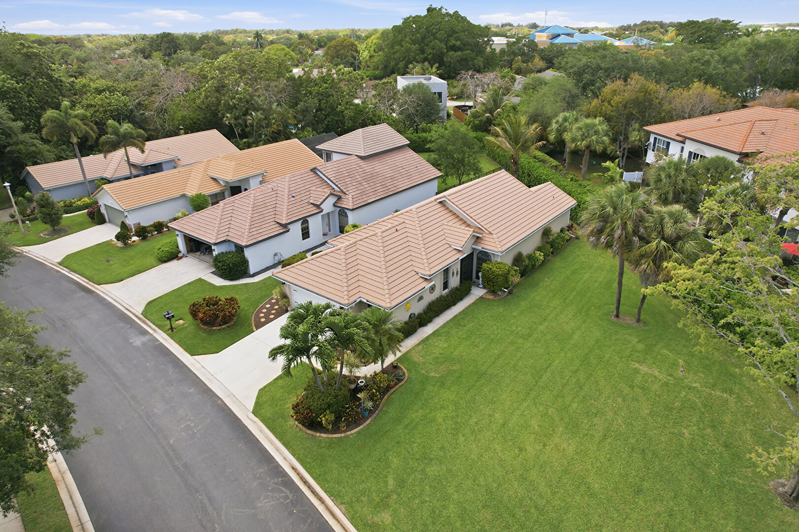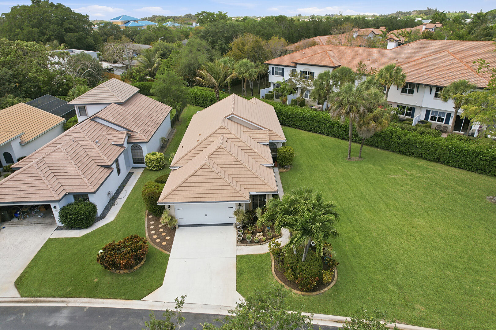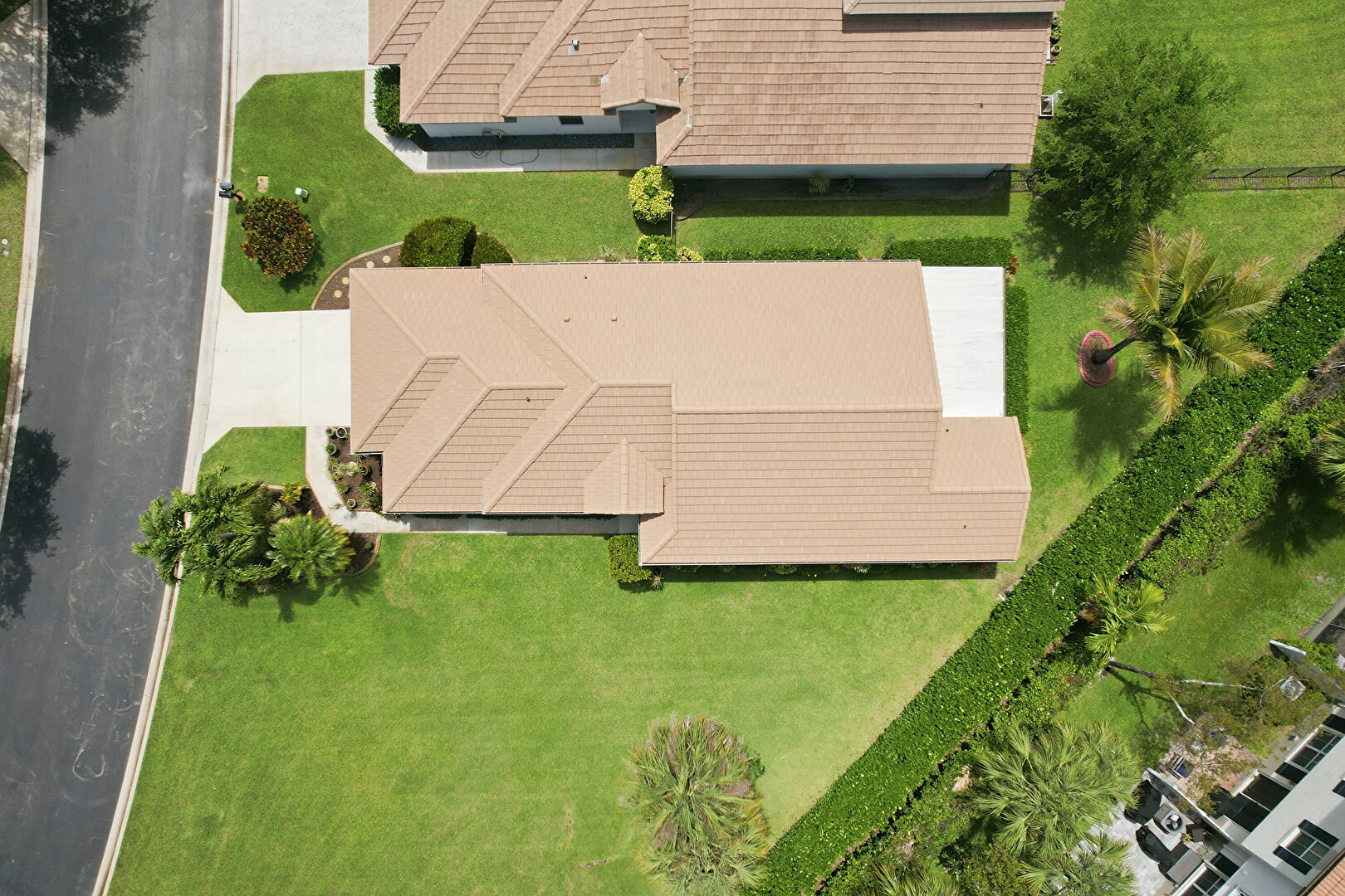 Downspout, Driveway, Gutters, Lawn, Pad Mount Transformer, Stucco Siding, Tile Roof, Downspout, Driveway, Gutters, Lawn, Stucco Siding