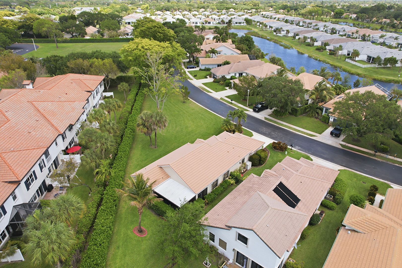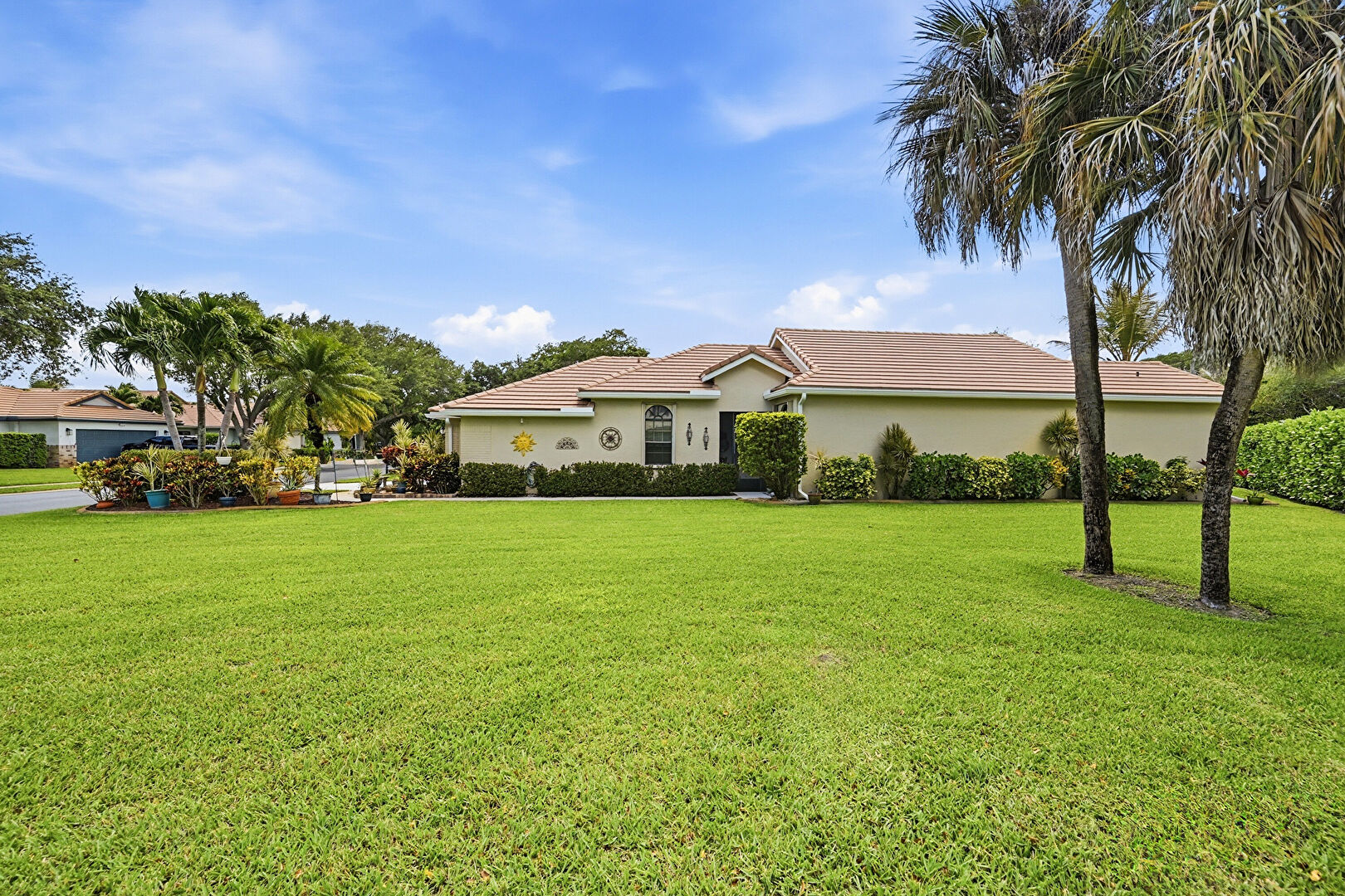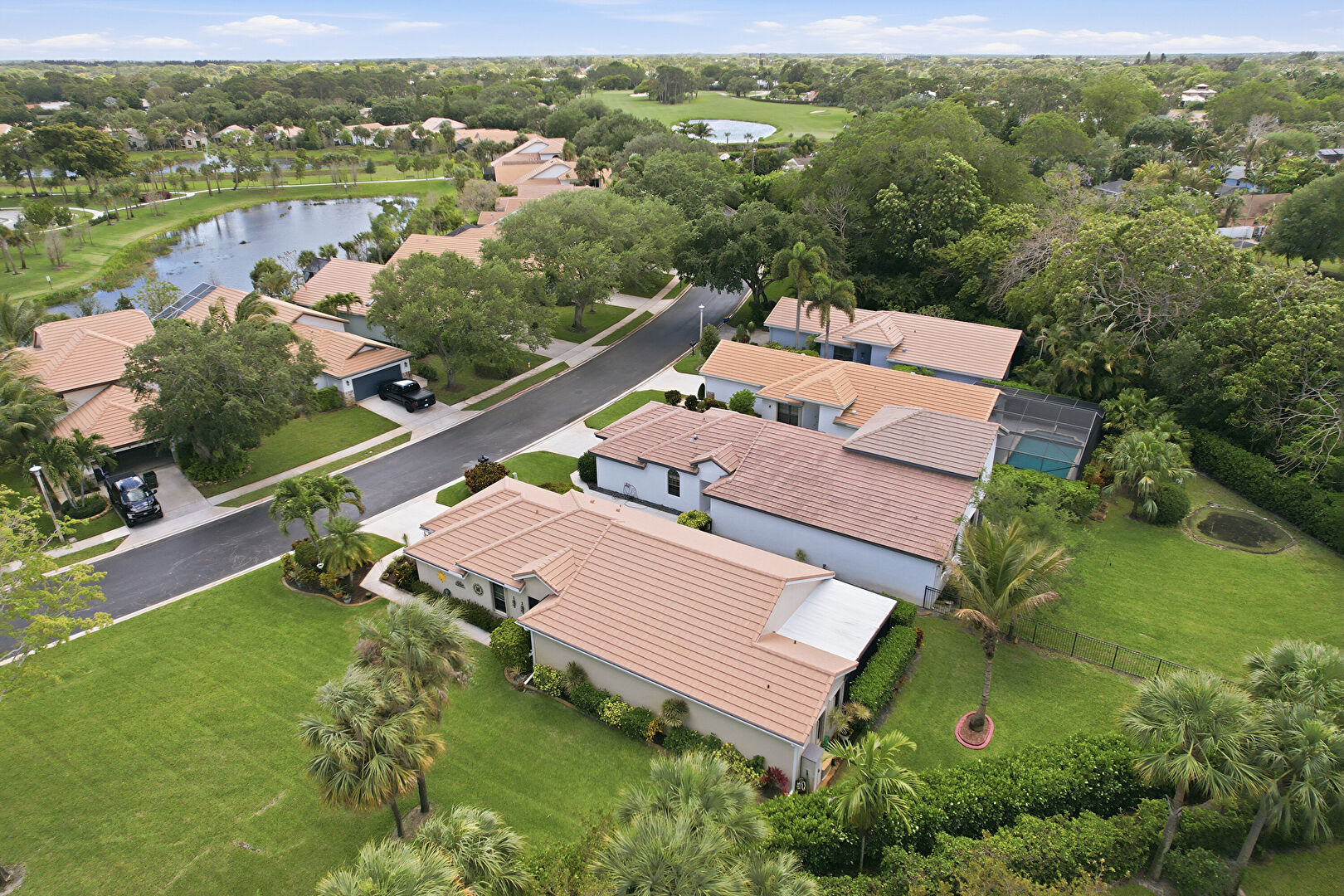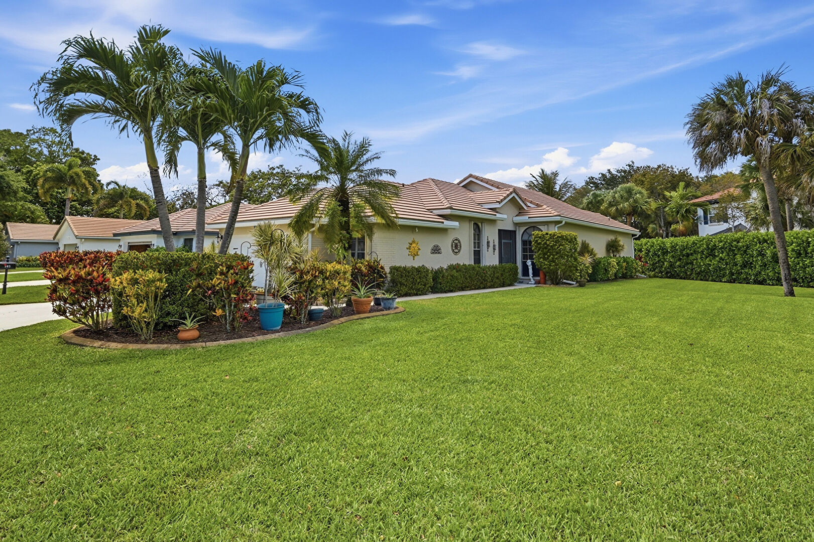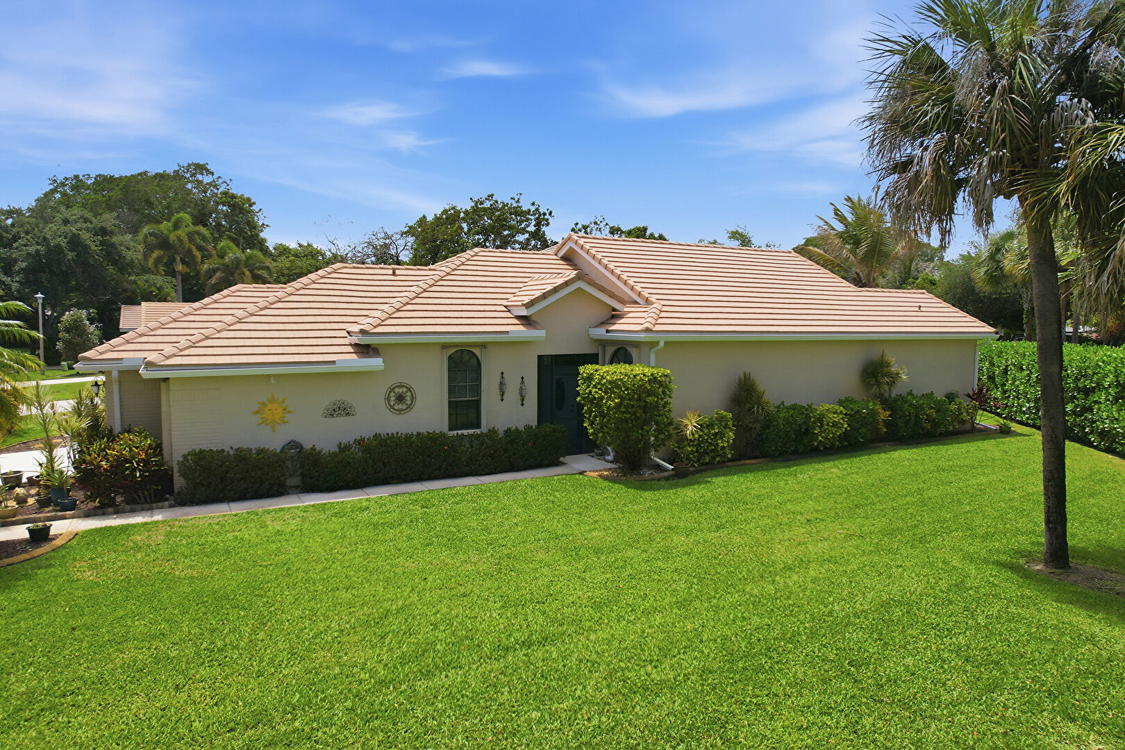 Downspout, Driveway, Gutters, Lawn, Pad Mount Transformer, Stucco Siding, Tile Roof, Downspout, Driveway, Gutters, Lawn, Stucco Siding