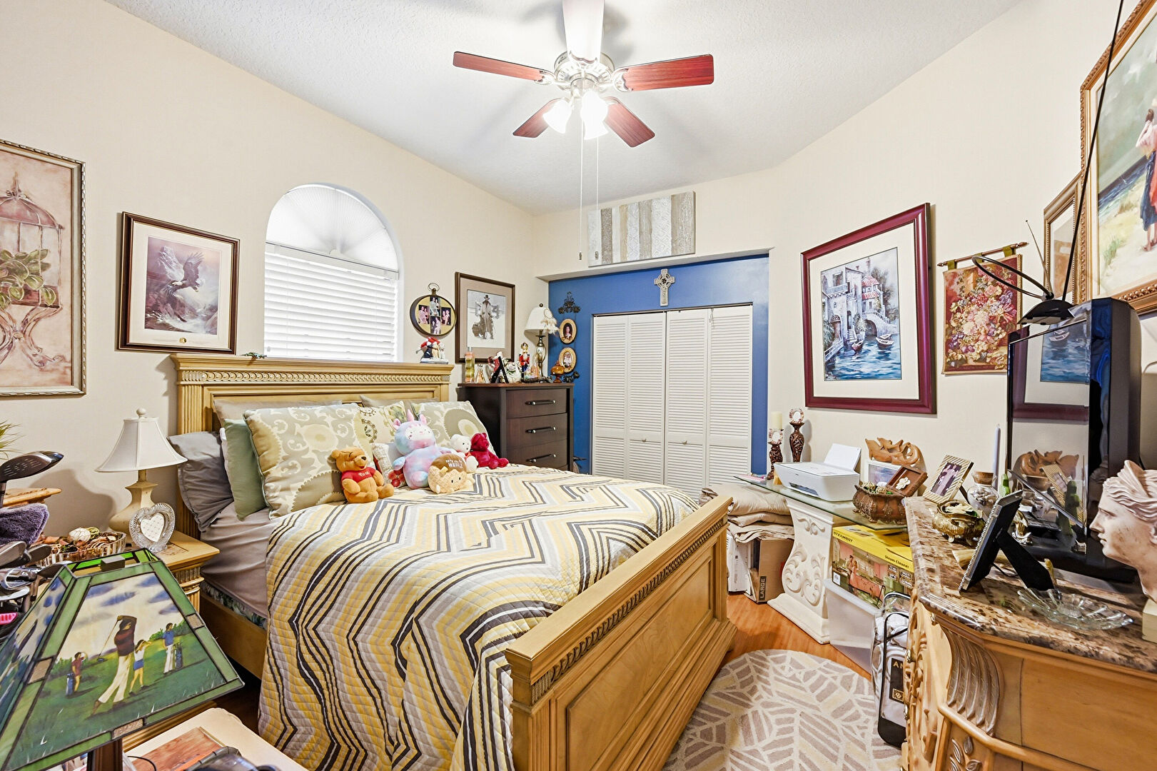 Ceiling Fan, Closet, Drywall, Vent, Wood Finish Floor, Natural Light, Wood Finish Floor