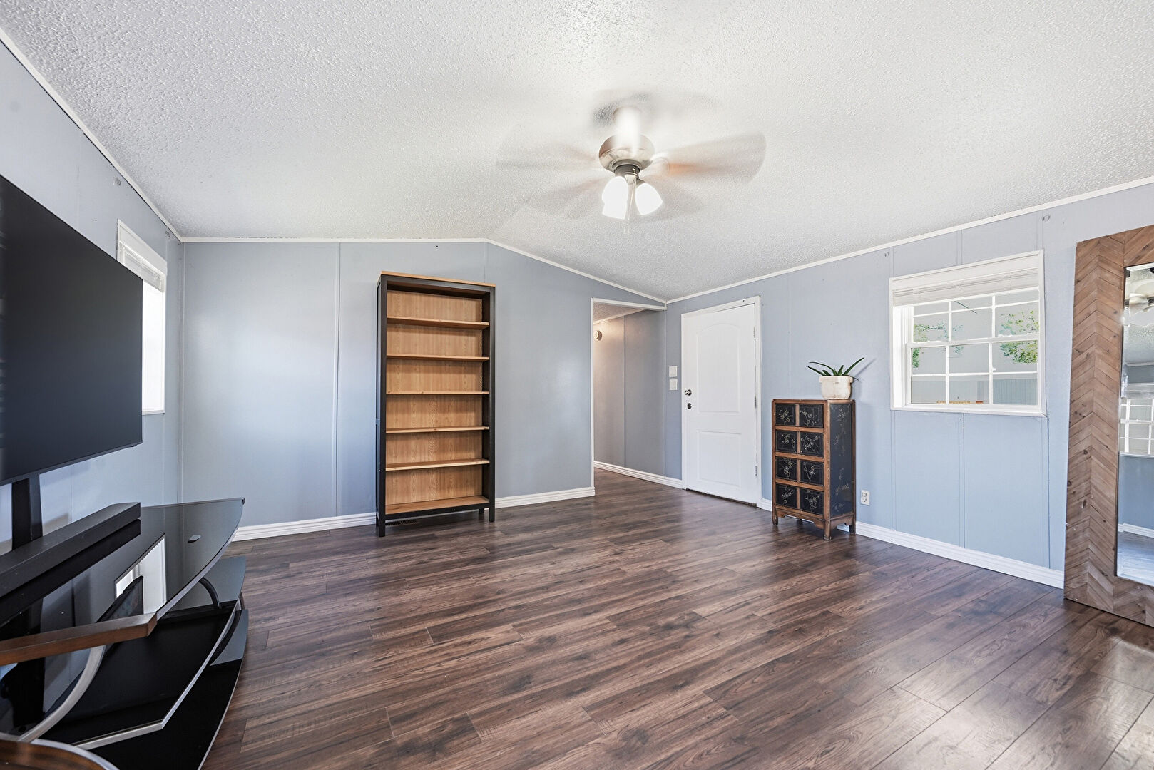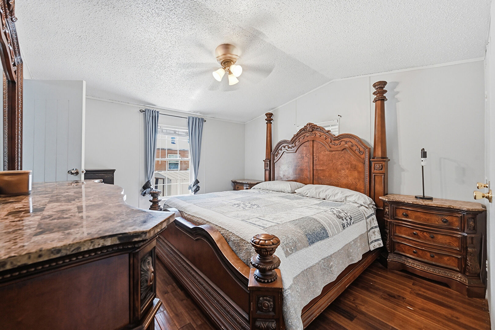 Ceiling Fan, Drywall, Natural Light, Textured Ceiling, Two Closets, Vaulted Ceiling, Ceiling Fan, Wood Finish Floor