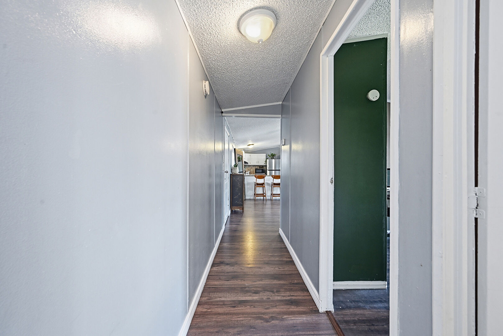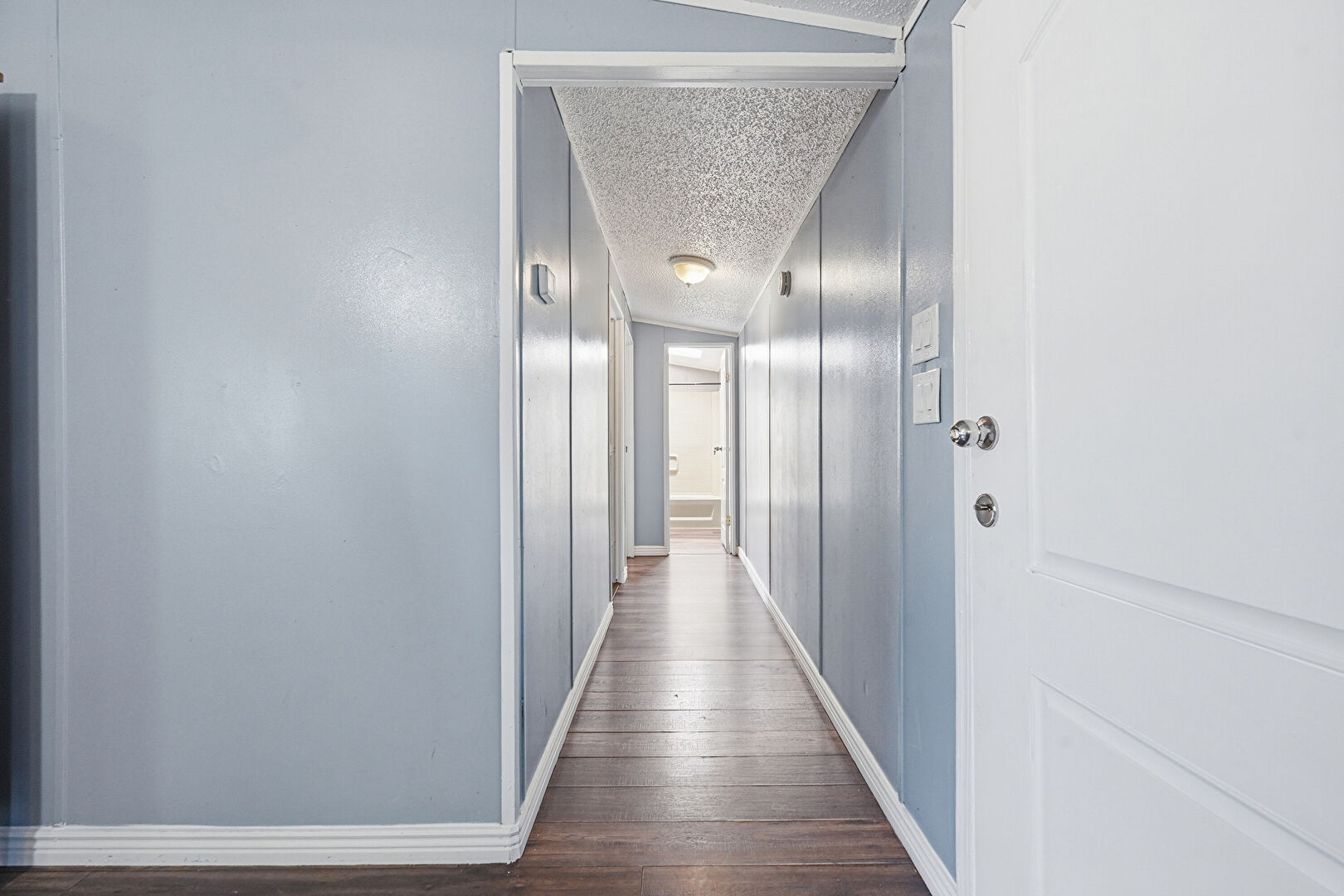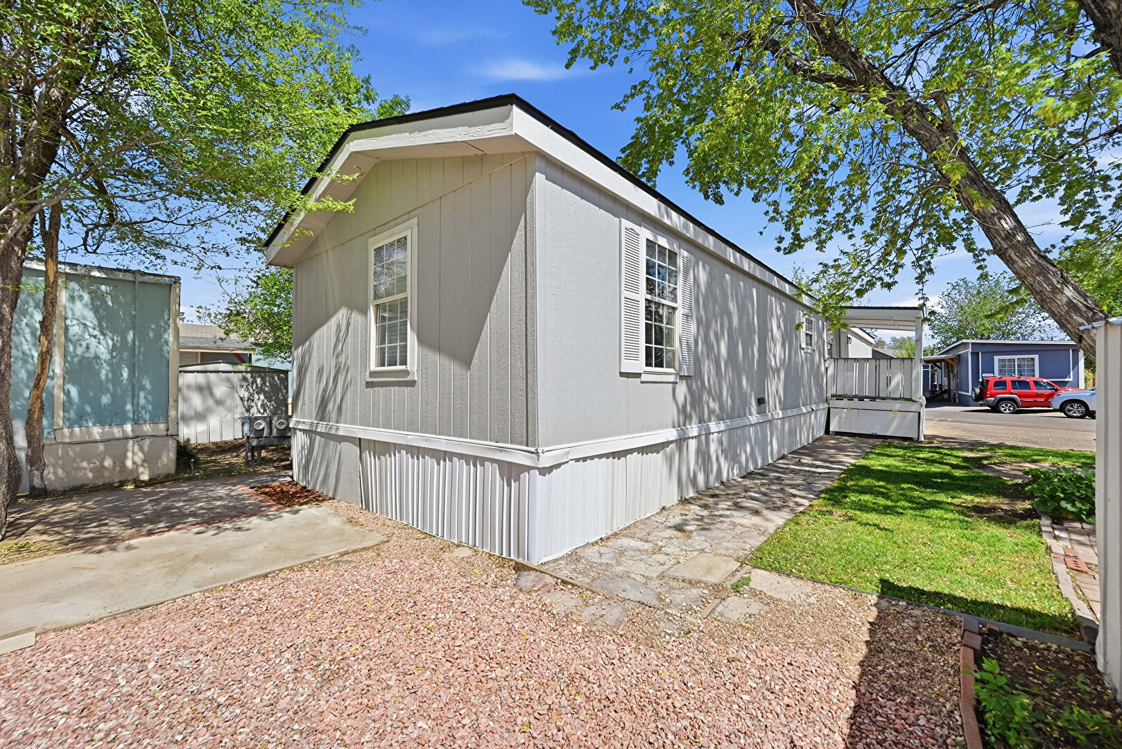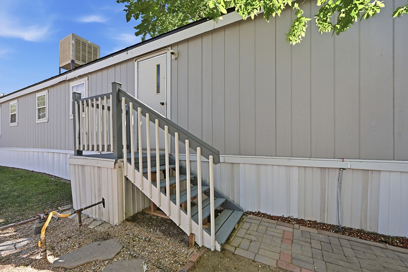 Parking Pad, Skirt, Vertical Siding, Wood Siding, Skirt, Stoop, Vertical Siding