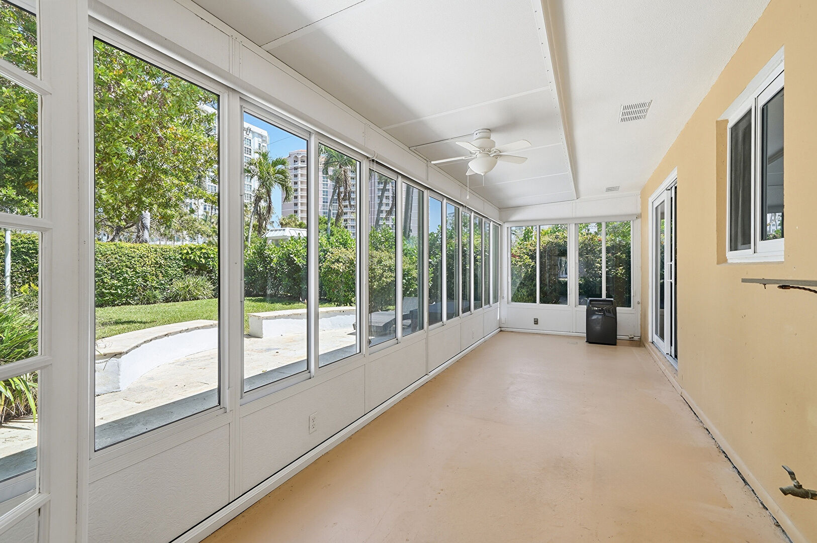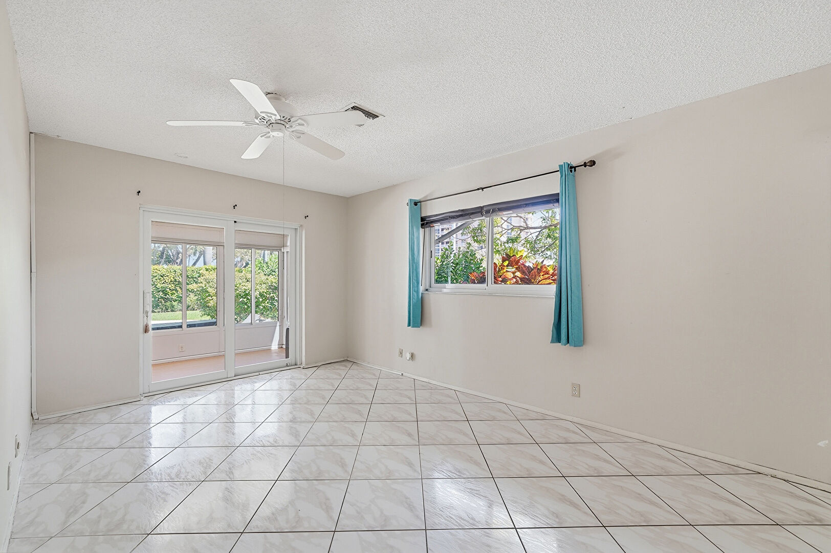 Access To Exterior, Baseboards Wall, Ceiling Fan, Closet, Drywall, Natural Light, Sunroom, Textured Ceiling, Tile Floor, Vent, Baseboards Wall, Ceiling Fan, Sunroom