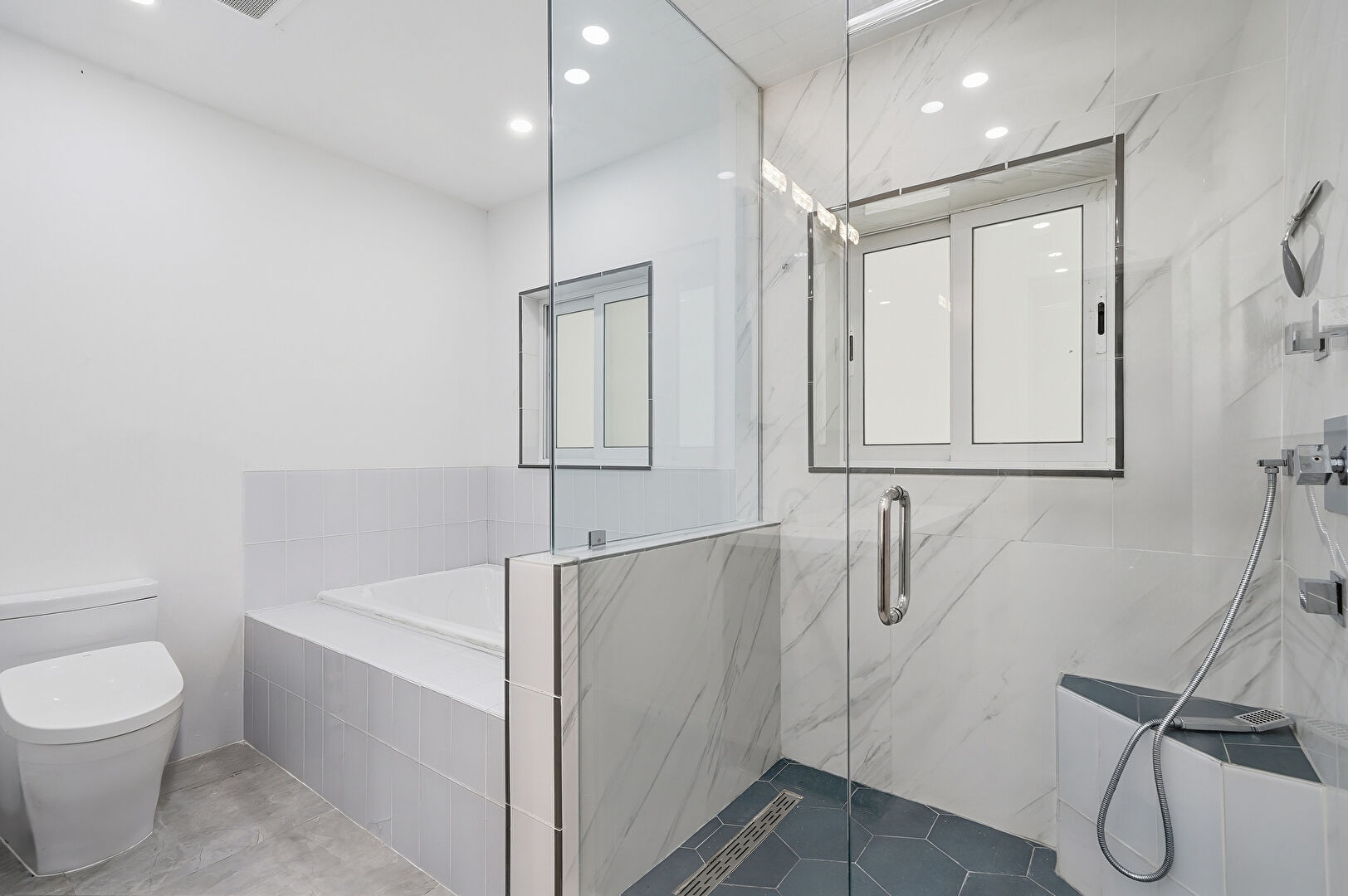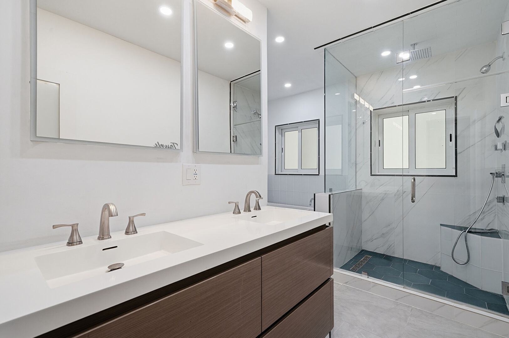 Double Vanity, Drywall, Full Bathroom, Natural Light, Recessed Lighting, Tile Floor, Vent, Drywall, Recessed Lighting
