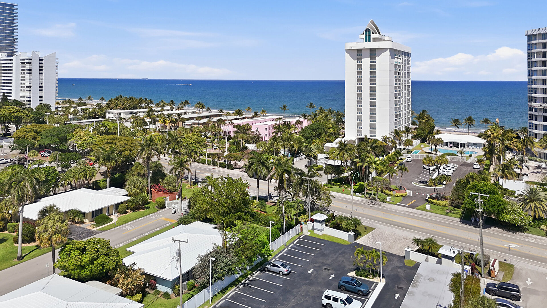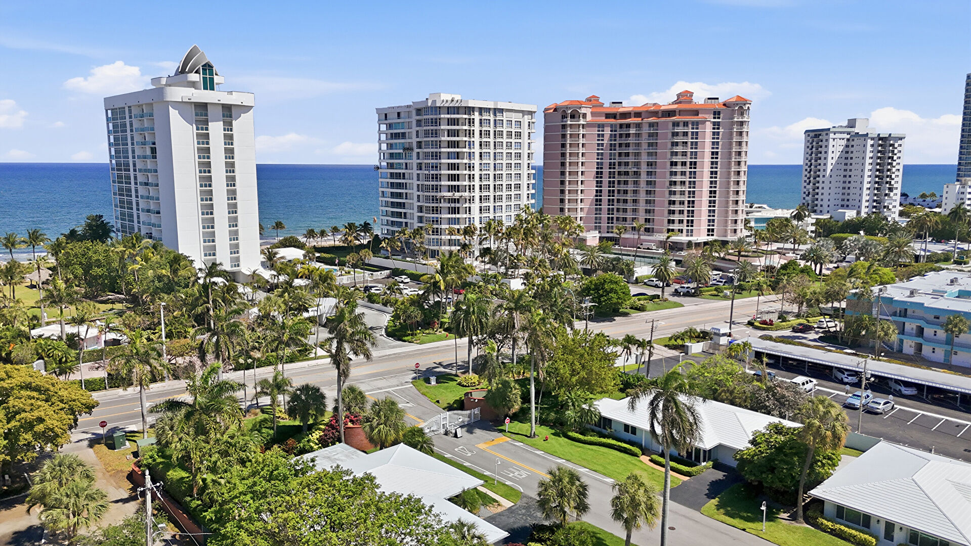 Apartment Complex View, Central Ac, Driveway, Gutters, Lawn, Parking Pad, Porch, Stucco Siding, Tile Roof, City View, Downspout, Driveway, Lawn, Stucco Siding