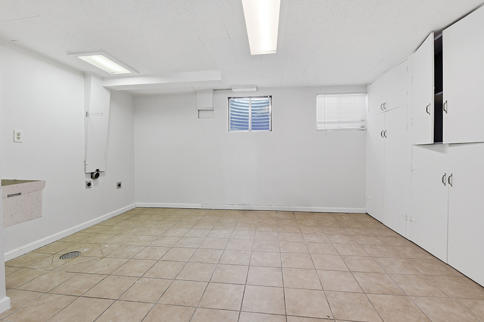 Baseboards Wall, Drywall, Natural Light, Tile Floor, Basement