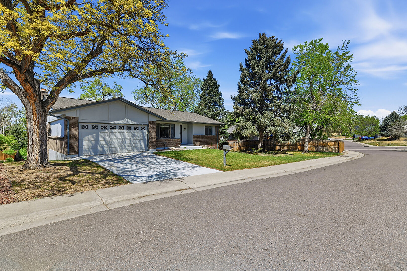 Brick Siding, Downspout, Driveway, Fence, Lawn, Vertical Siding, Brick Siding, Concrete Foundation