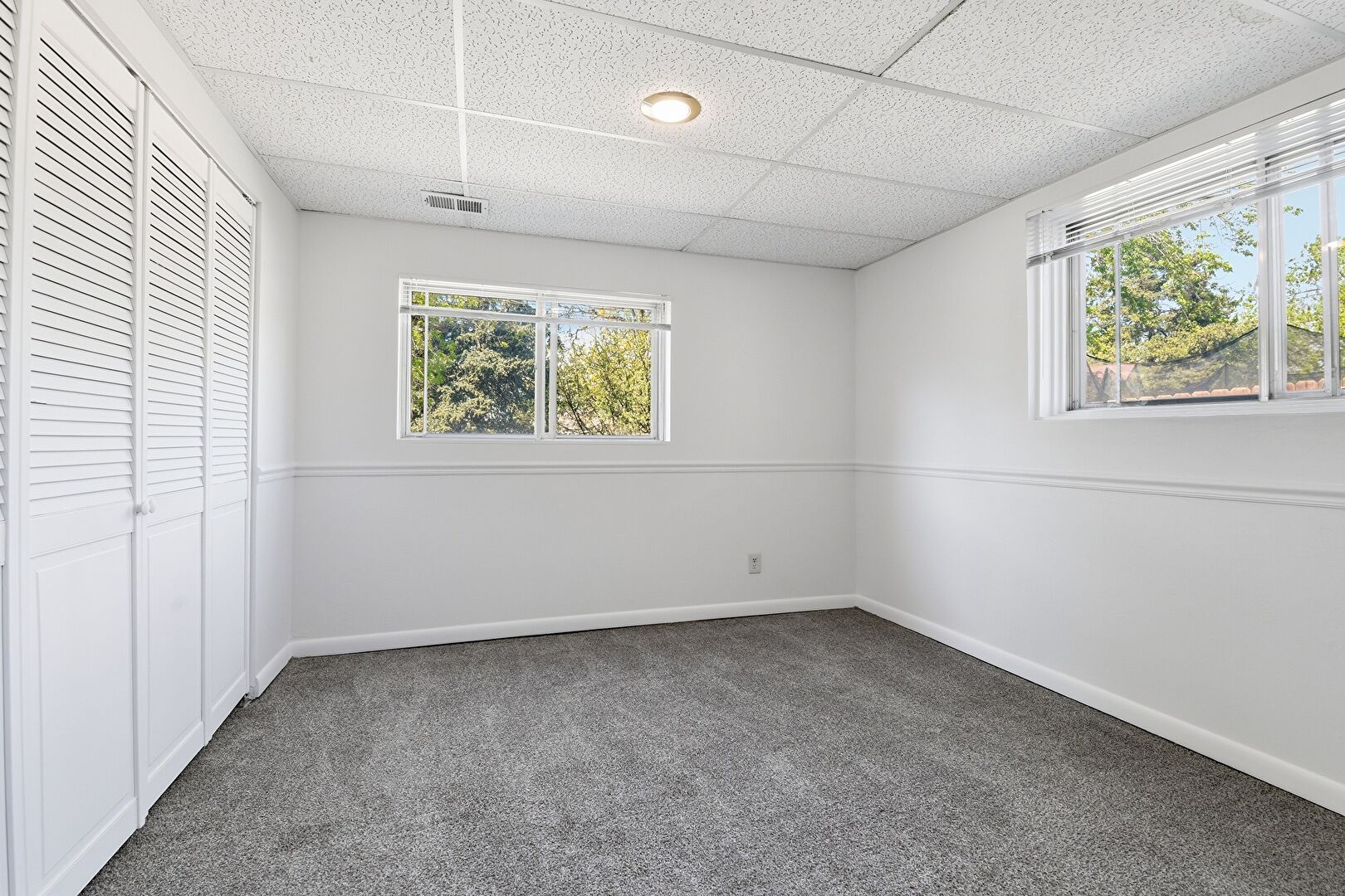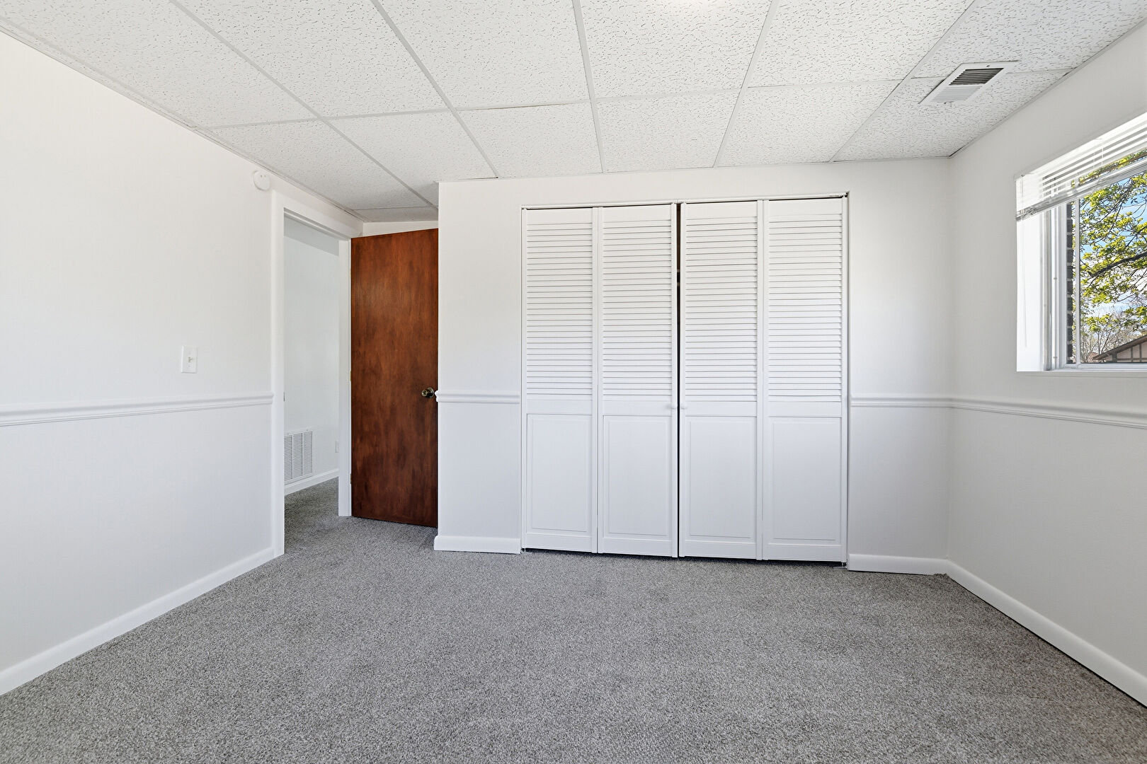 Baseboards Wall, Basement, Carpet, Closet, Drop Ceiling, Drywall, Natural Light, Vent, Baseboards Wall, Closet