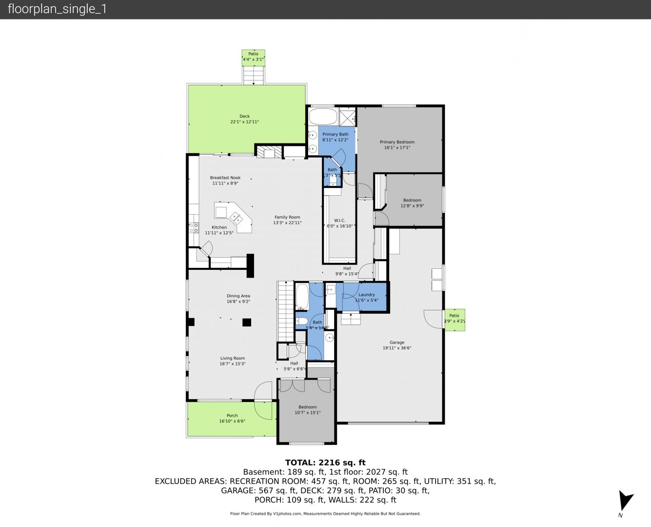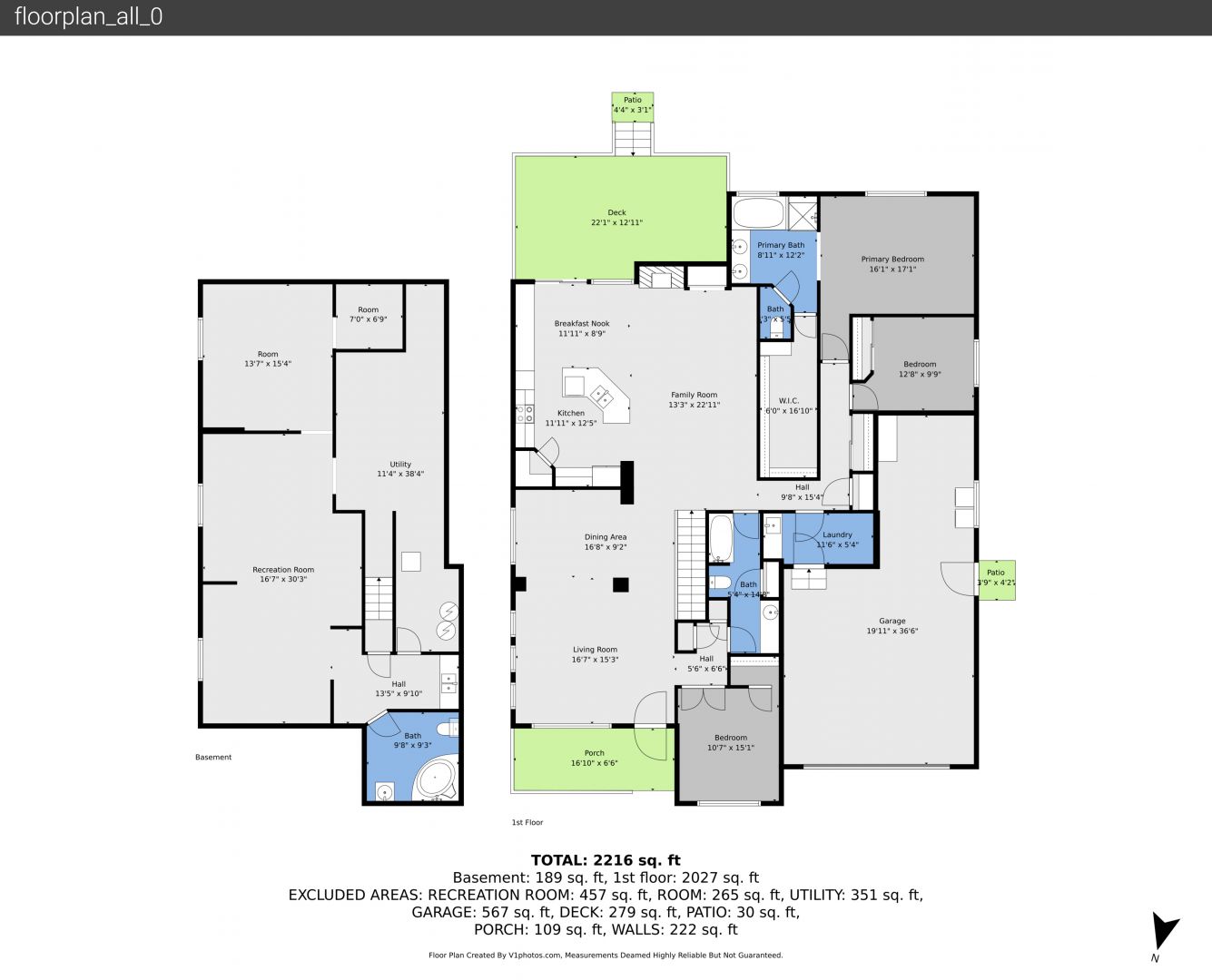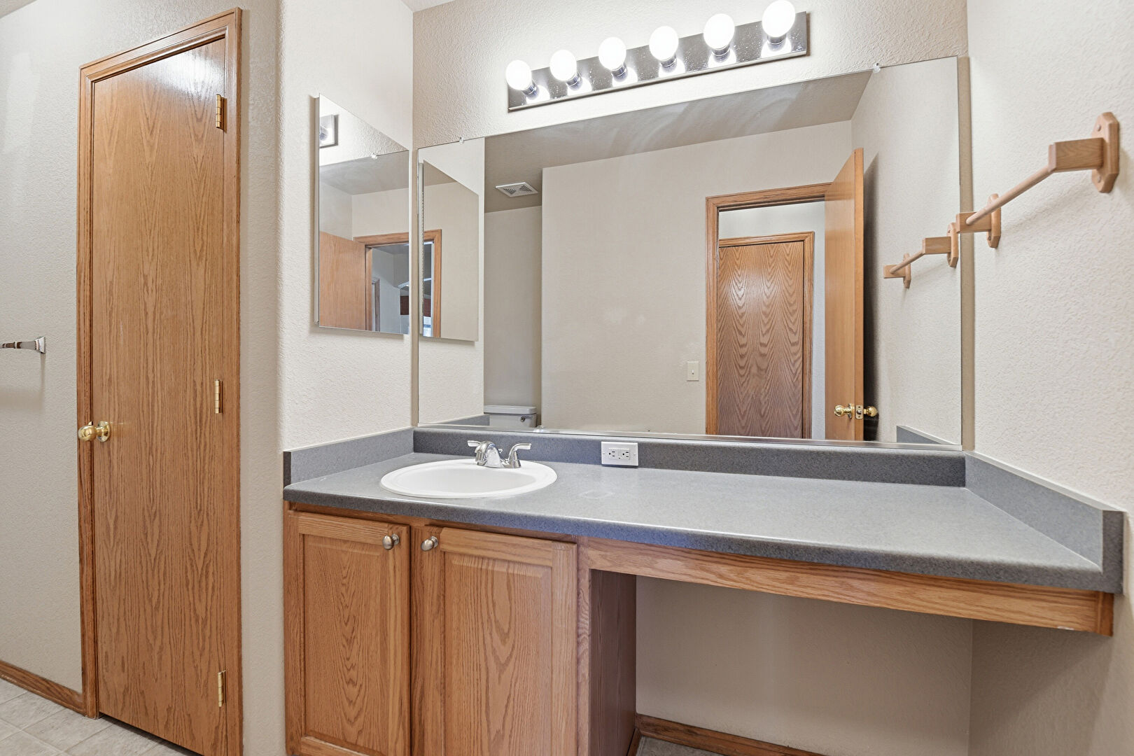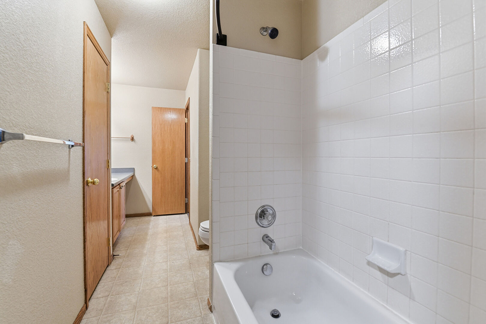 Baseboards Wall, Combined Bath Shower, Full Bathroom, Half Bathroom, Textured Ceiling, Textured Wall, Tile Floor, Vanity, Vent, Closet, Vanity