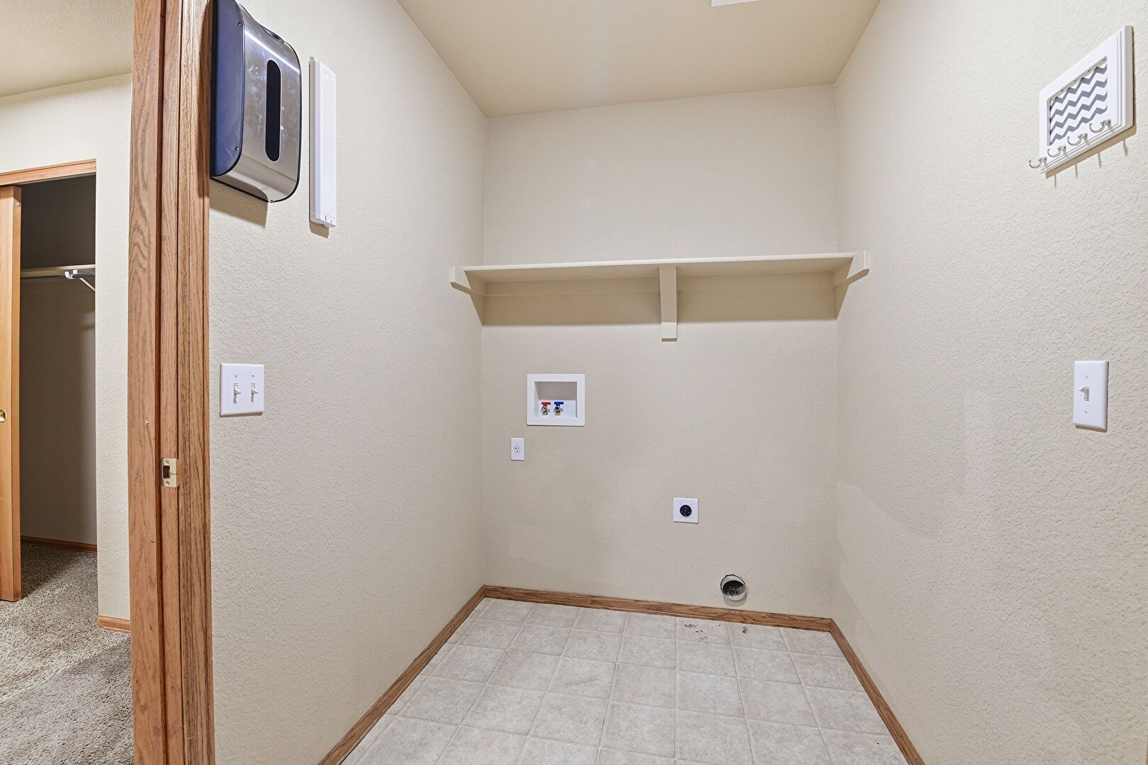 Baseboards Wall, Laundry, Textured Wall, Vinyl Floor, Washer Hookup, Electric Dryer Hookup