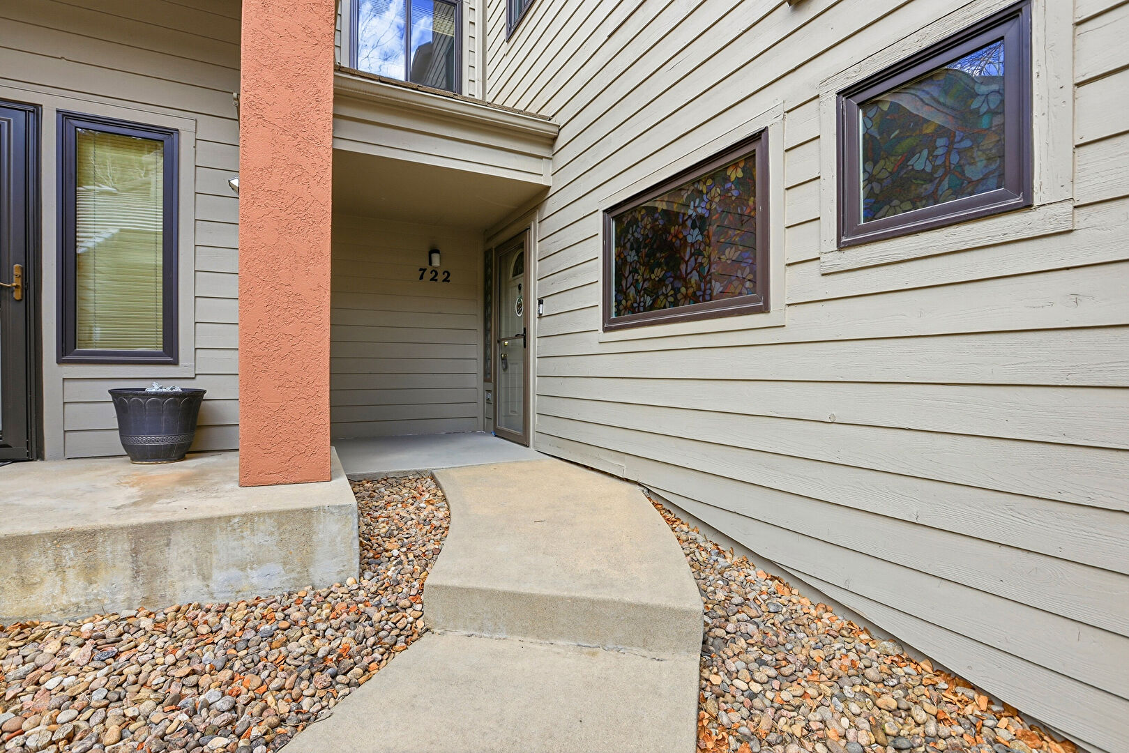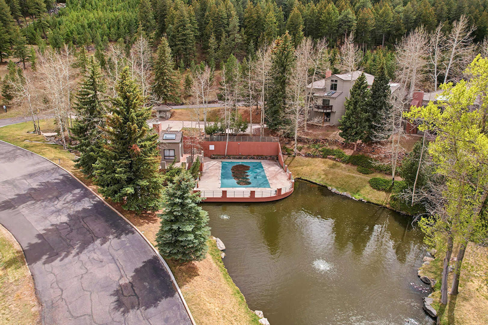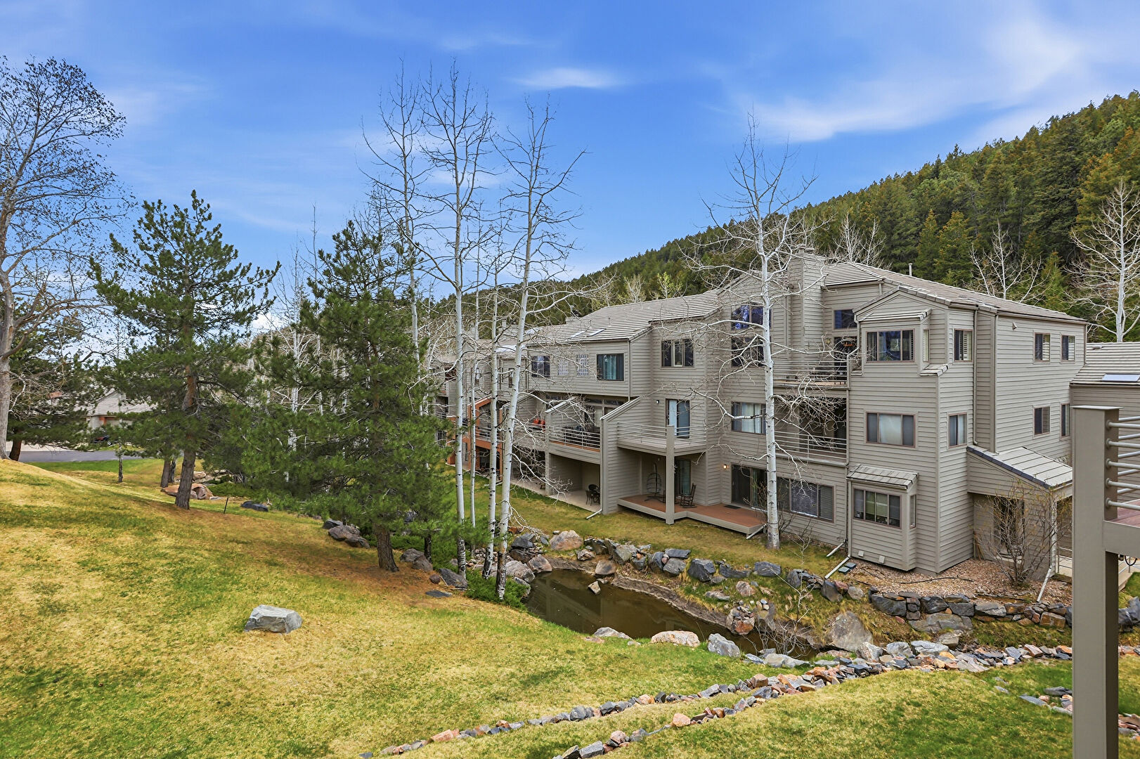 Apartment Complex View, Chimney, Deck, Horizontal Siding, Water View, Lawn