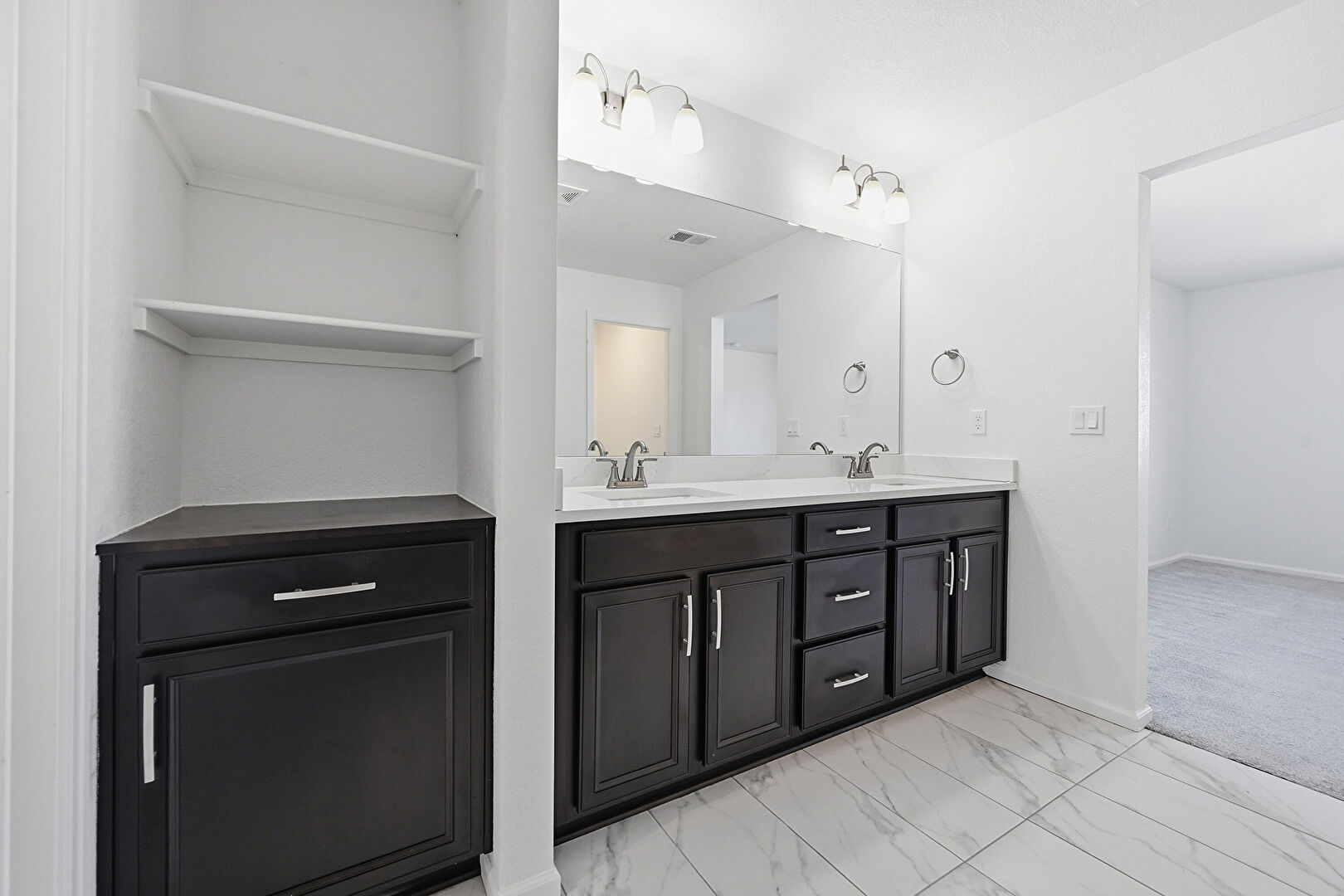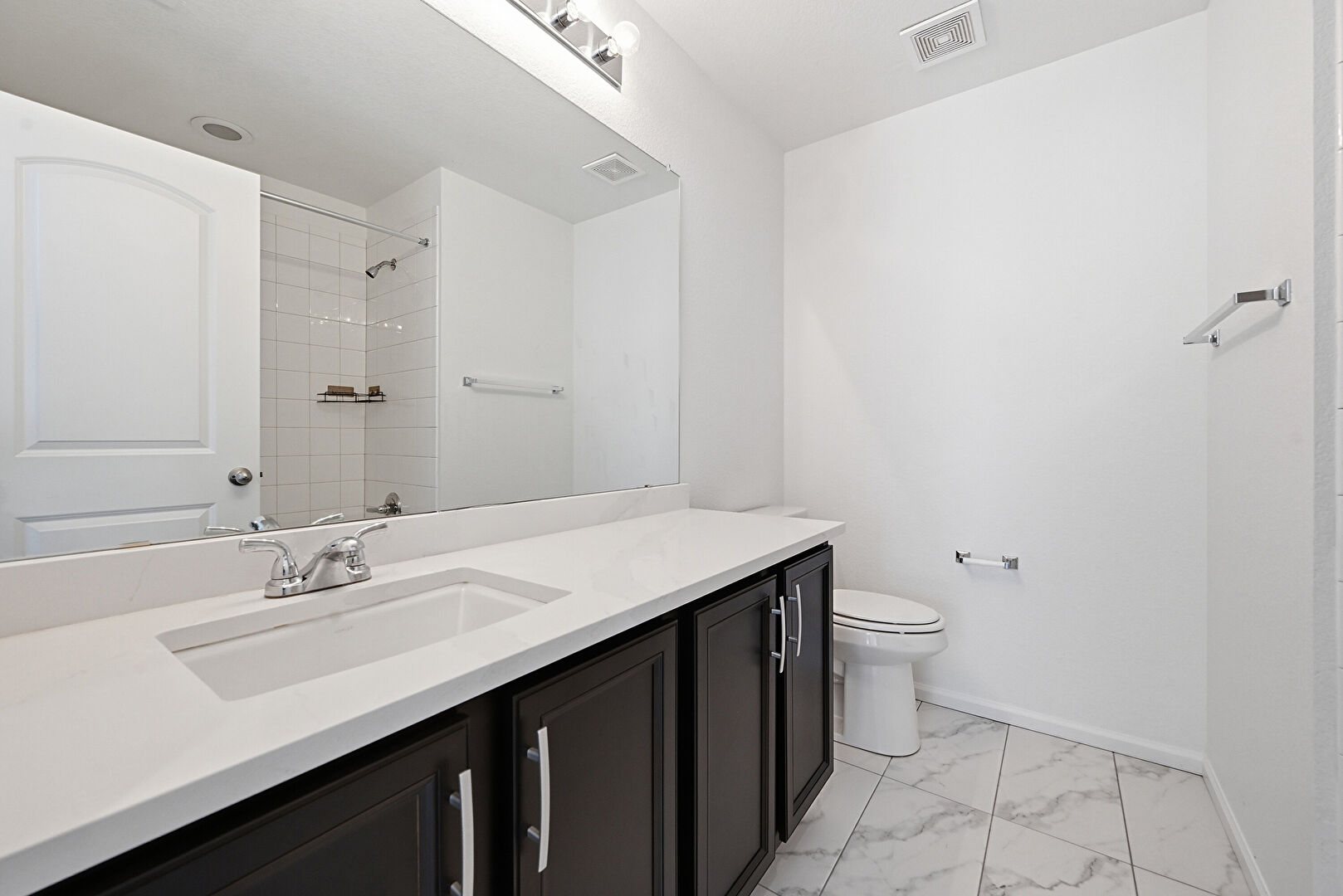 Baseboards Wall, Double Vanity, Drywall, Full Bathroom, Half Bathroom, Marble Finish Floor, Natural Light, Recessed Lighting, Vanity, Vent, Water Closet, Wood Finish Floor, Baseboards Wall, Carpet, Full Bathroom, Marble Finish Floor