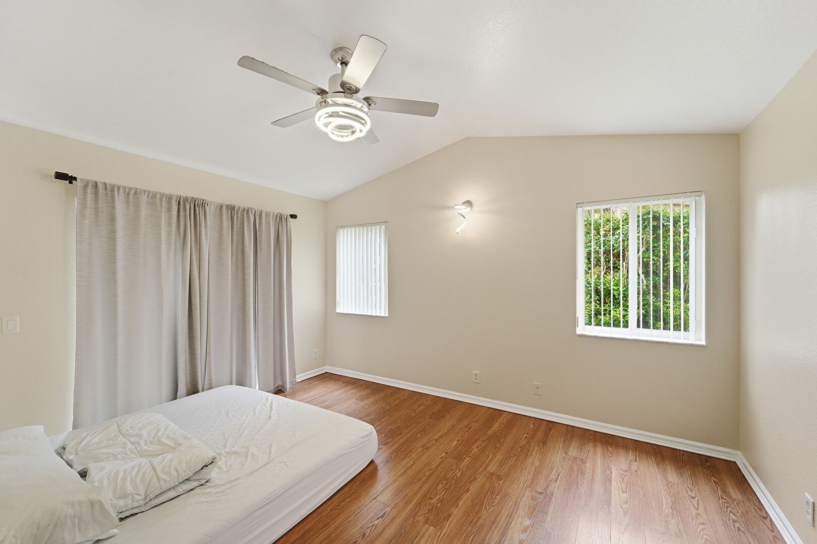 Baseboards Wall, Cathedral Ceiling, Ceiling Fan, Drywall, Ensuite Bathroom, Natural Light, Smoke Carbon Monoxide Detector, Vaulted Ceiling, Vent, Wood Finish Floor, Ceiling Fan, Vent, Wood Finish Floor