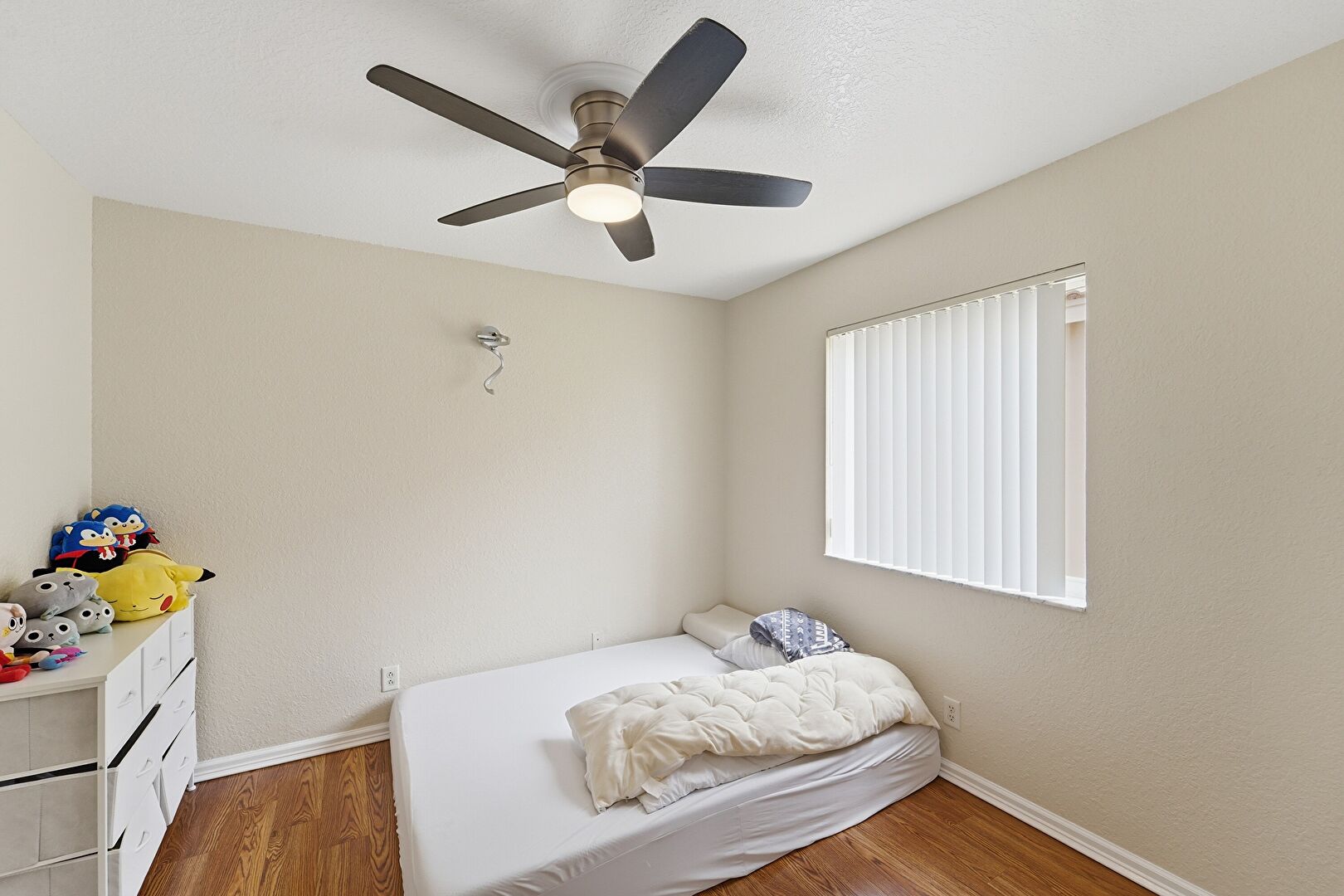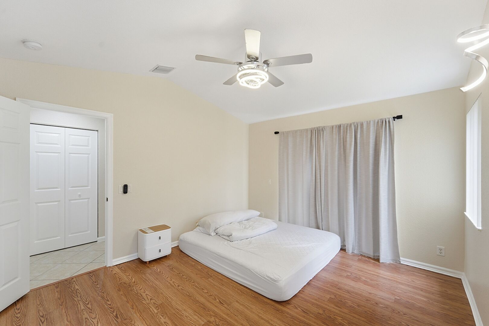 Baseboards Wall, Ceiling Fan, Closet, Drywall, Natural Light, Textured Wall, Wood Finish Floor, Ceiling Fan, Smoke Carbon Monoxide Detector