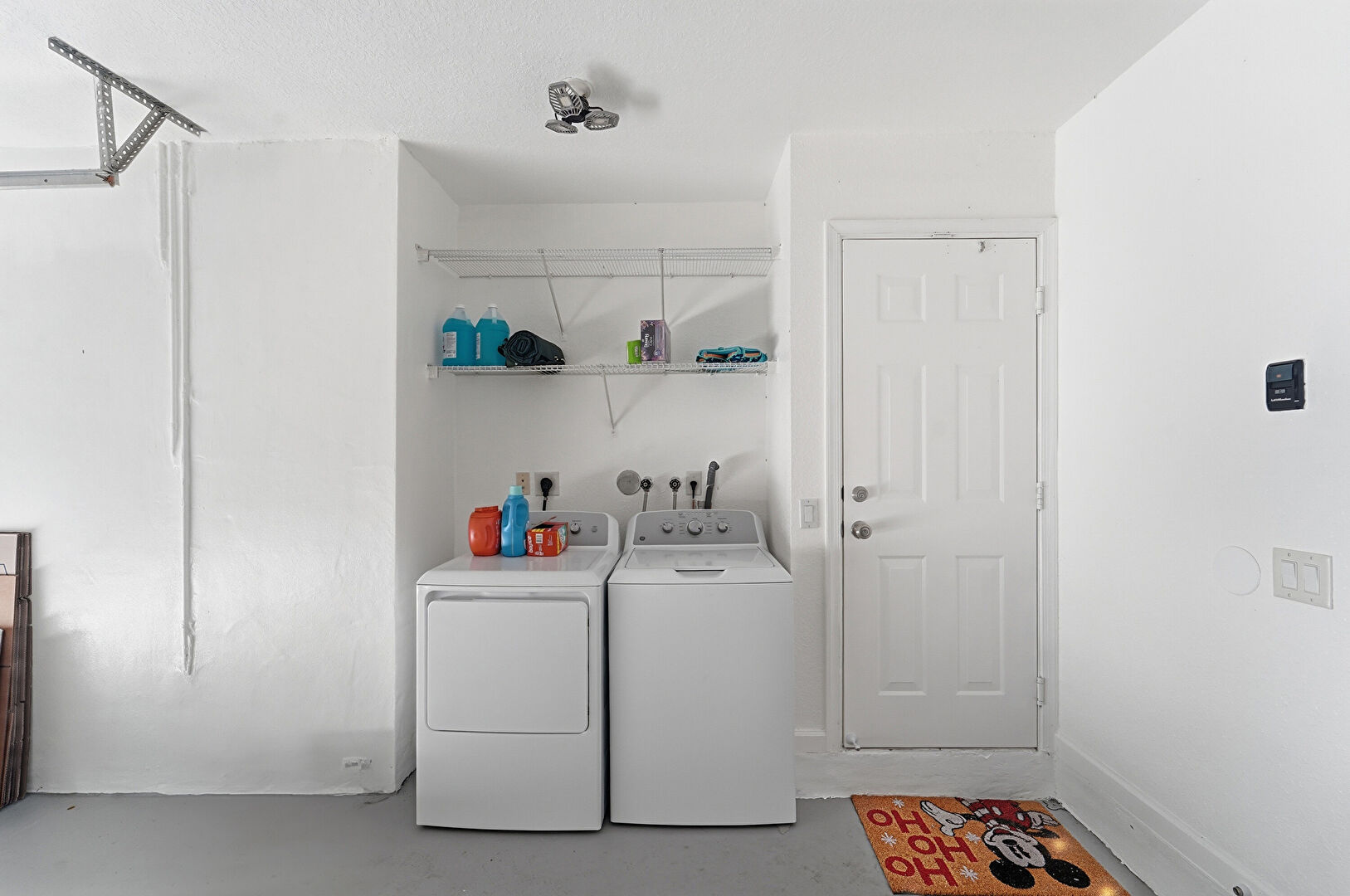 Concrete Floor, Drywall, Electric Dryer Hookup, Laundry, Textured Ceiling, Washer Hookup