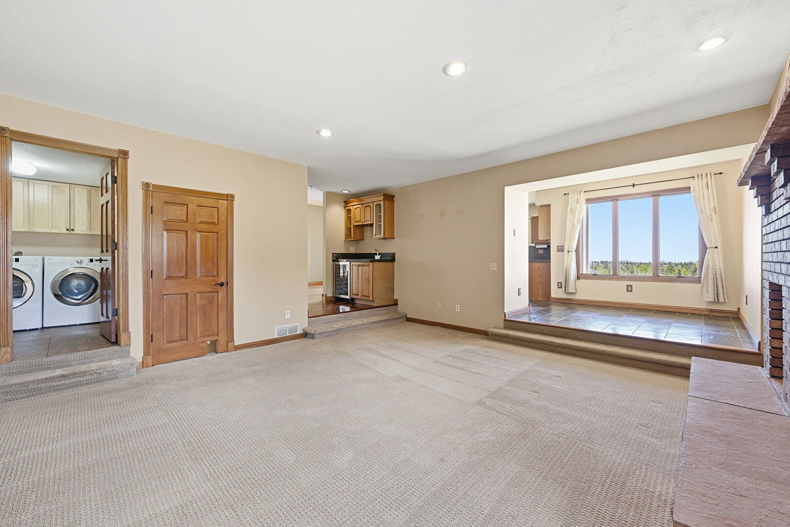 Baseboards Wall, Carpet, Drywall, Fireplace, Laundry, Natural Light, Recessed Lighting, Vent, Fireplace, Wine Cooler