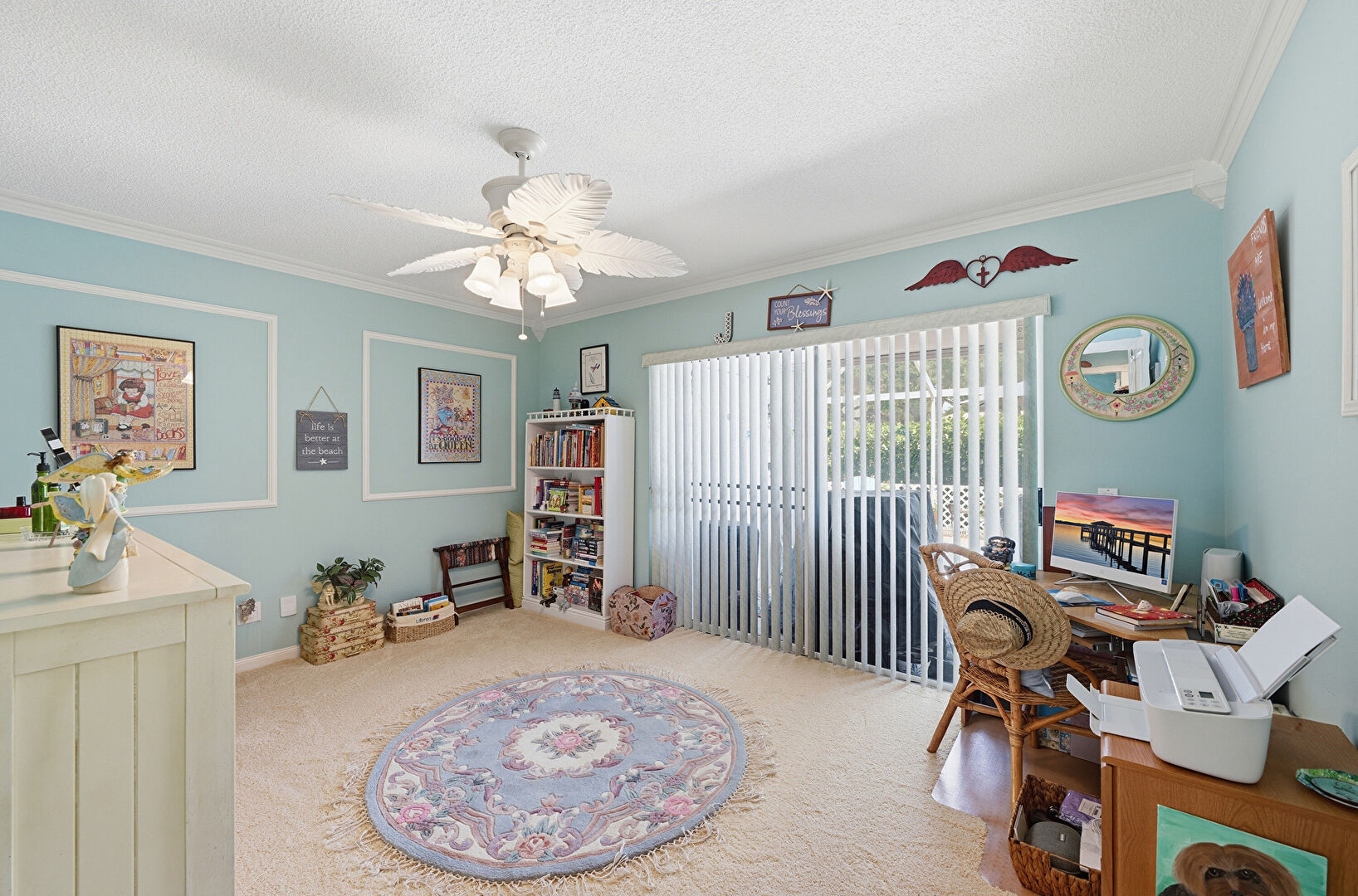 Access To Exterior, Baseboards Wall, Carpet, Ceiling Fan, Closet, Crown Molding, Drywall, Natural Light, Textured Ceiling, Vent, Carpet, Closet, Drywall