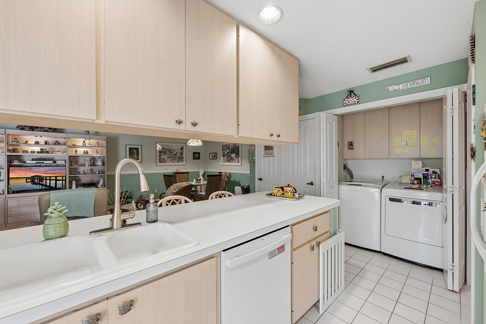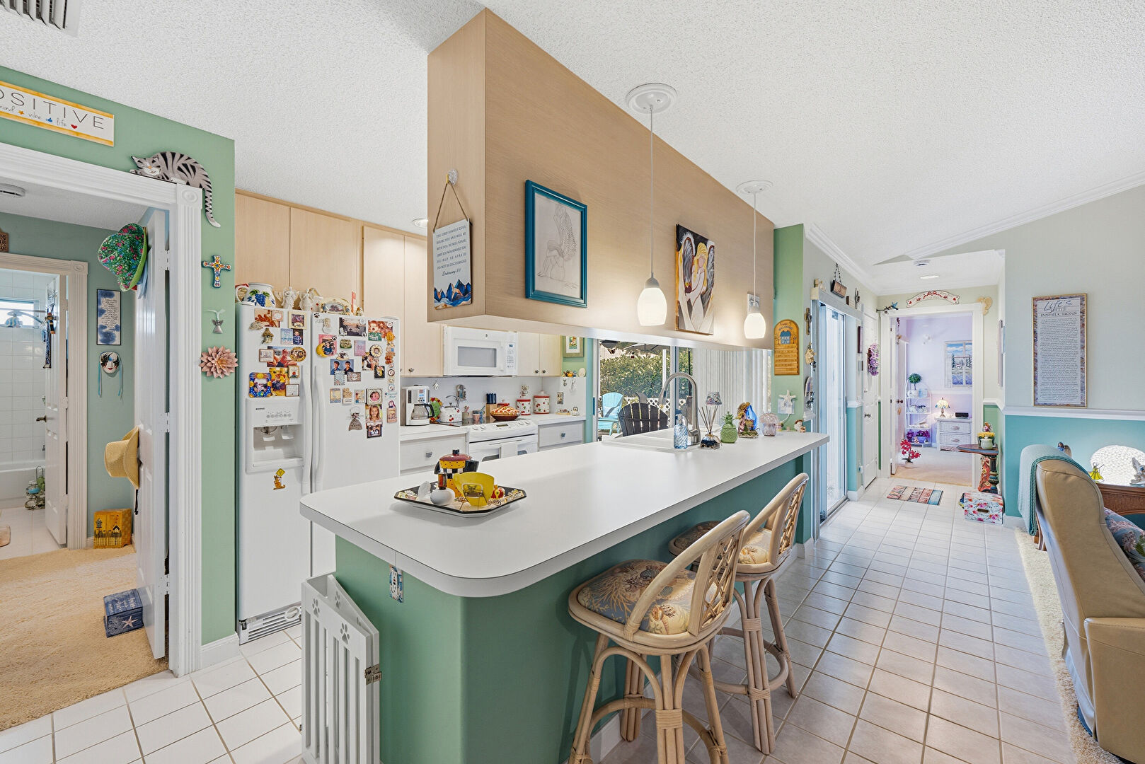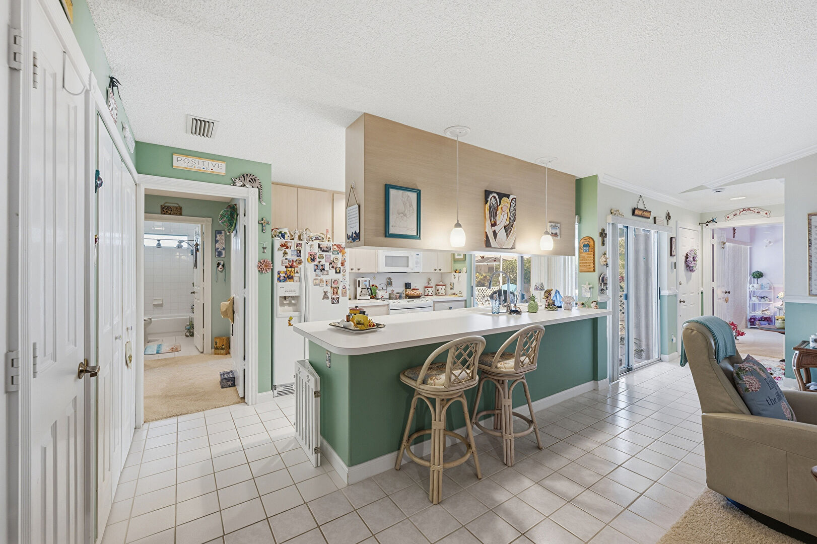 Baseboards Wall, Carpet, Crown Molding, Drywall, Kitchen Bar, Kitchen Island, Kitchen Peninsula, Laundry, Natural Light, One Wall Kitchen, Opens To Living Area, Pendant Lighting, Recessed Lighting, Textured Ceiling, Tile Floor, Vaulted Ceiling, Vent, Green Cabinets, Opens To Living Area, Textured Ceiling, Tile Floor