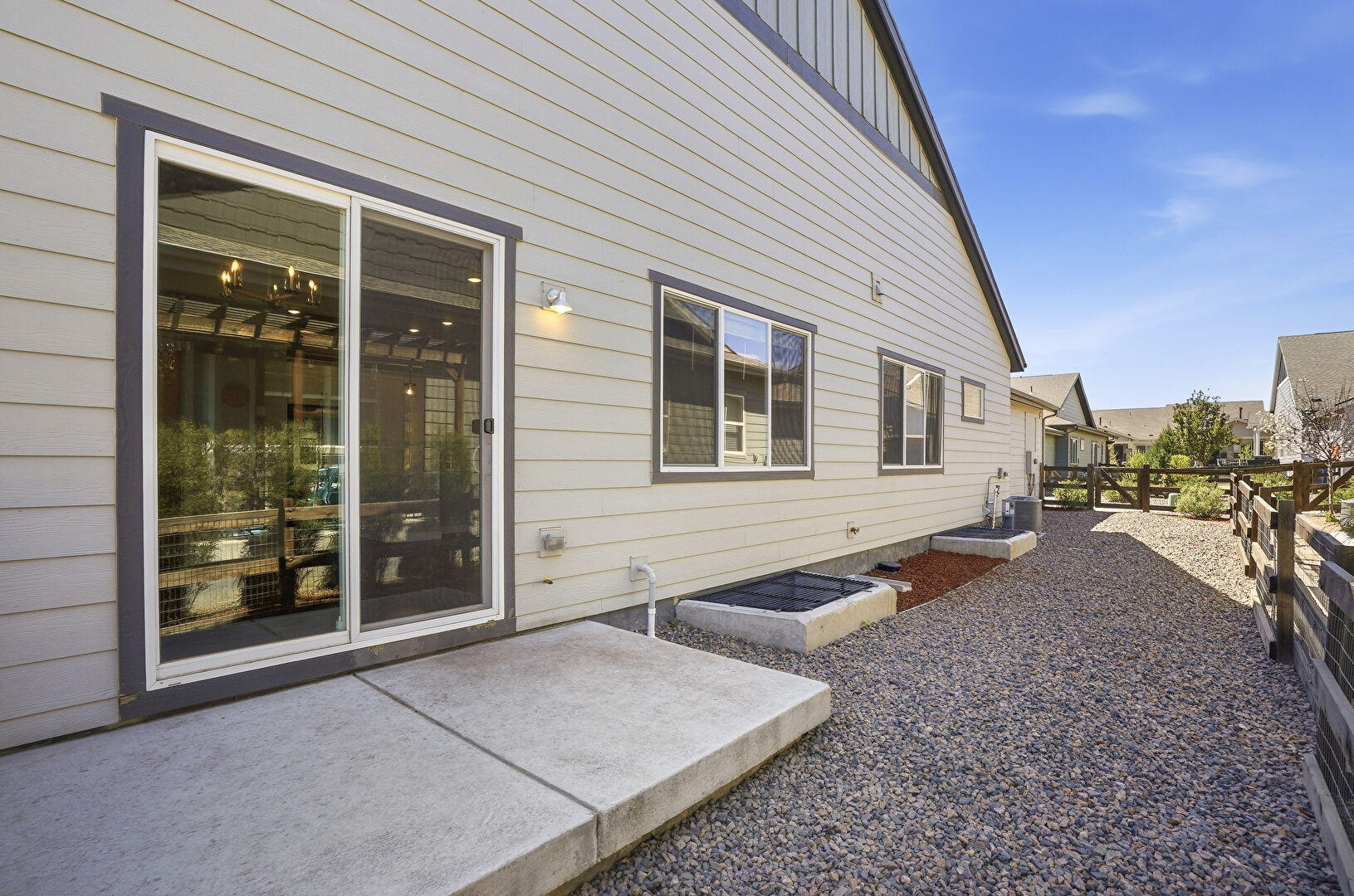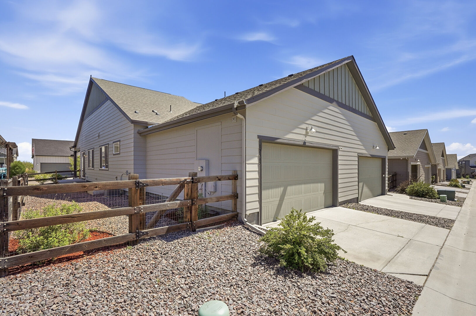 Board Batten Siding, Driveway, Electric Meter, Fence, Gate, Gutters, Horizontal Siding, Patio, Residential View, Shingle Roof, Vertical Siding, Concrete Foundation, Downspout